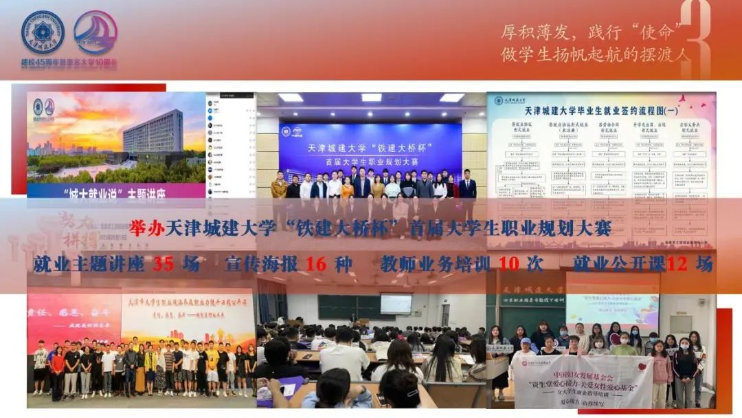 走好担当之路,她积极参与构建“全程化、多层面、立体式”服务格局,做学生扬帆起航的摆渡人。拓宽就业渠道,分层次、分行业、分区域举办专场招聘活动608场,累计推介岗位14万余个;精化帮扶模式,组织85名低收入家庭毕业生参加“宏志助航计划”,发放求职创业补贴2437人;强化贴心跟踪,开创性启动“职场青苗”培养计划,带领学生前往10家企业开展“毕业生就业跟踪调研”;升级就业指导,参与举办首届大学生职业规划大赛,主讲“城大就业说”主题讲座35场,开展教师业务培训10次,组织就业公开课12场,引领毕业生志存高远。三年来,185名毕业生录用基层就业项目,1名毕业生获评2022年全国“基层就业卓越奖”。