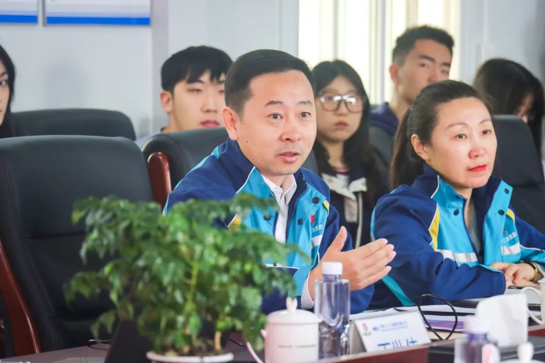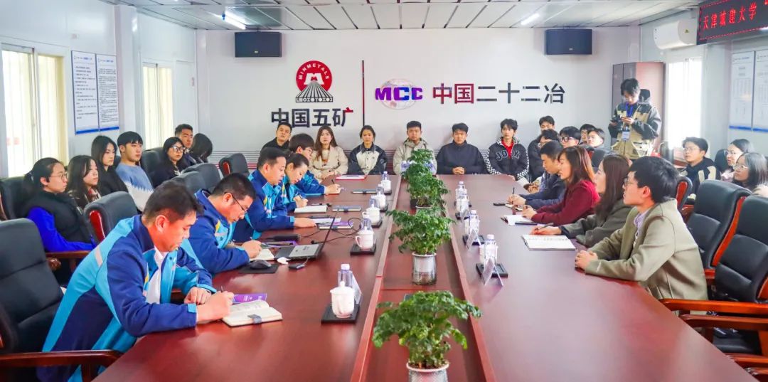 在项目现场实践研学结束后,校企双方举行座谈会并进行互动交流。中国二十二冶集团有限公司天津分公司党委书记王利锋对beat365vip官网登录入口师生的到来表示欢迎,并围绕公司的组织架构、发展情况、校企合作等方面进行了介绍。项目经理丁世伟重点介绍了项目整体概况、项目管理、智能建造、绿色建造等方面的特色亮点工作。beat3652022届校友、人力资源部宋英杰就职业规划、能力培养等方面与同学们进行了交流。学校党委学工部相关负责人分别围绕学校发展沿革、专业优势特色、毕业生就业以及学生培养等方面进行了交流。