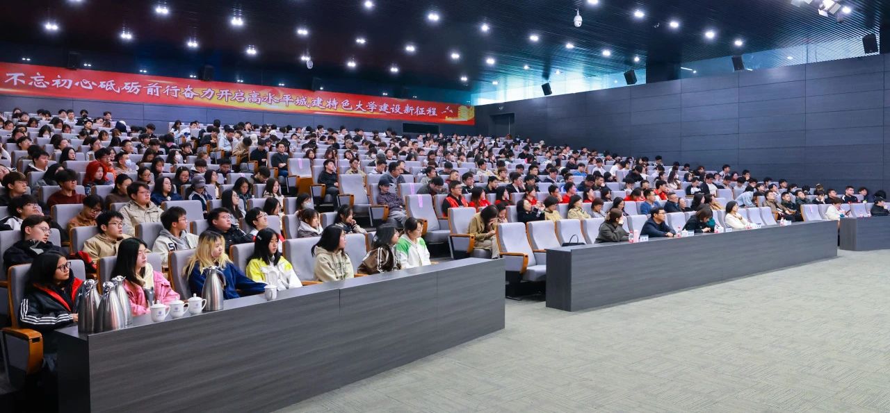魏国秋详细回顾了“风筝魏”的历史发展脉络与历代创作大师的典型作品,剖析了“扎、糊、绘、放”风筝制作工艺的四大要点。并通过现场互动的方式,带领在场师生绘画、制作和放飞“太极风筝”。一个个颜色各异的风筝在报告厅上空盘旋,在场师生亲身体验“风筝魏”独特的艺术个性和复杂的制作工艺,更加深入的了解了天津本土文化的独特内涵,感受中华优秀传统文化的博大精深。