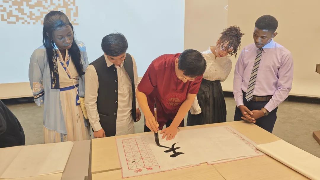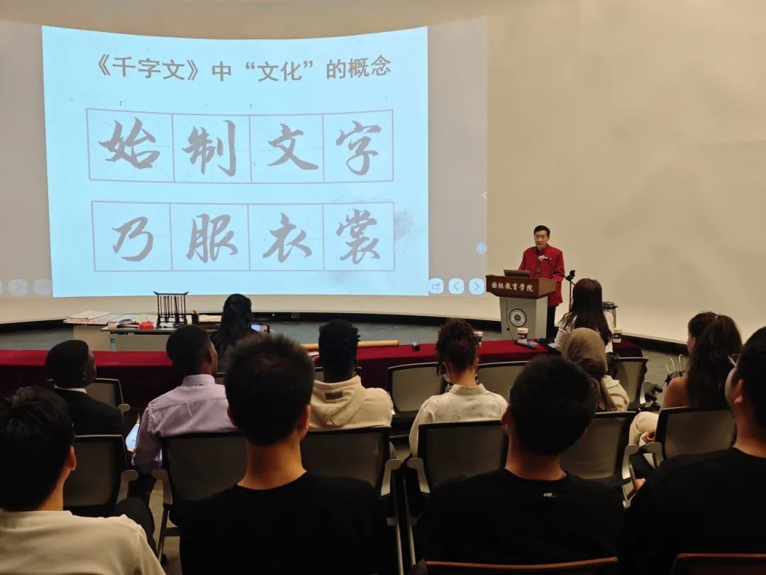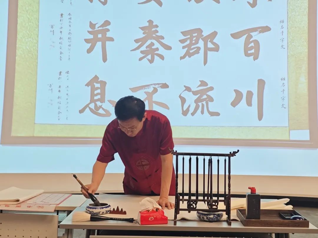 近日,北京书法家协会会员、荣宝拍卖书法作品专家百川老师为中外师生们带来了一场生动的“传承千年智慧,领略文字之美”——“千字文”国学文化讲座和书法展示活动。beat365中外合作办学学生和来自摩洛哥、孟加拉、乌干达、赞比亚等国家的百余名学生参加了活动。