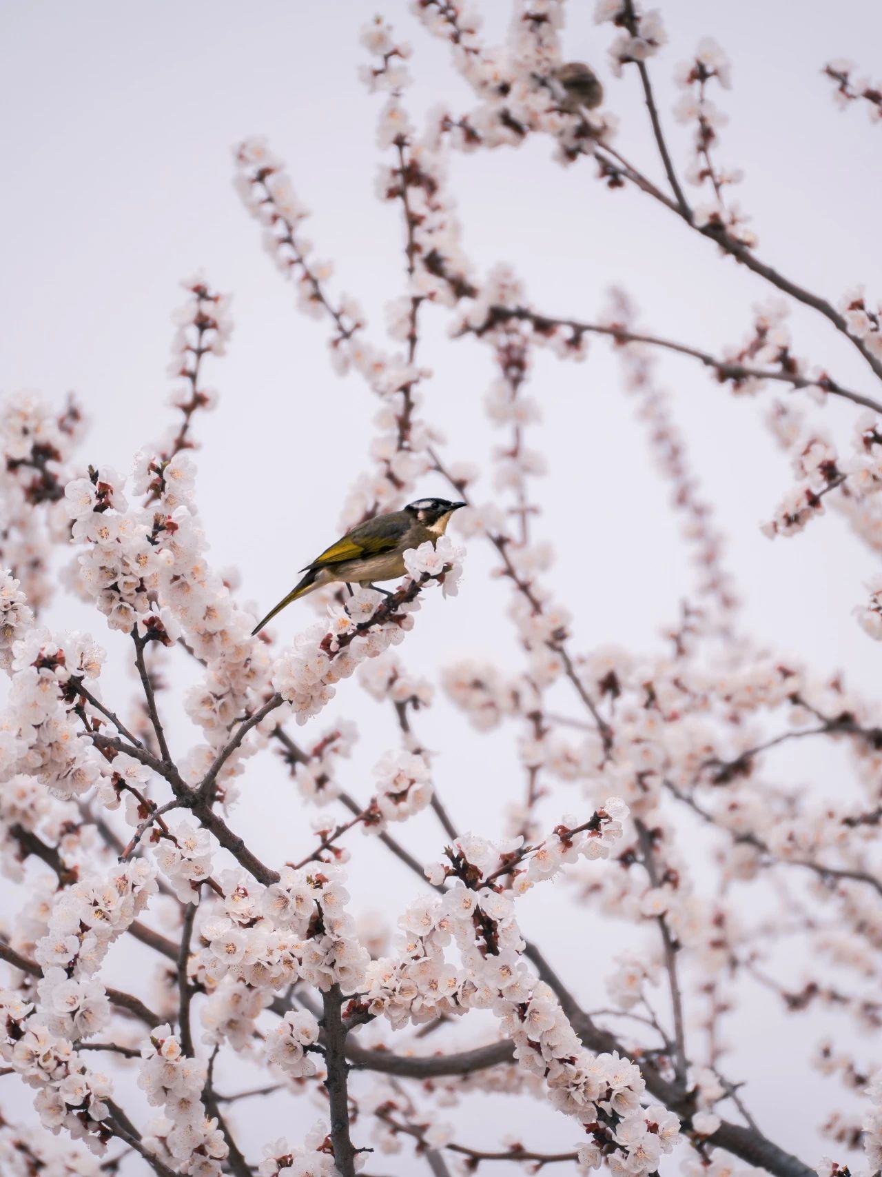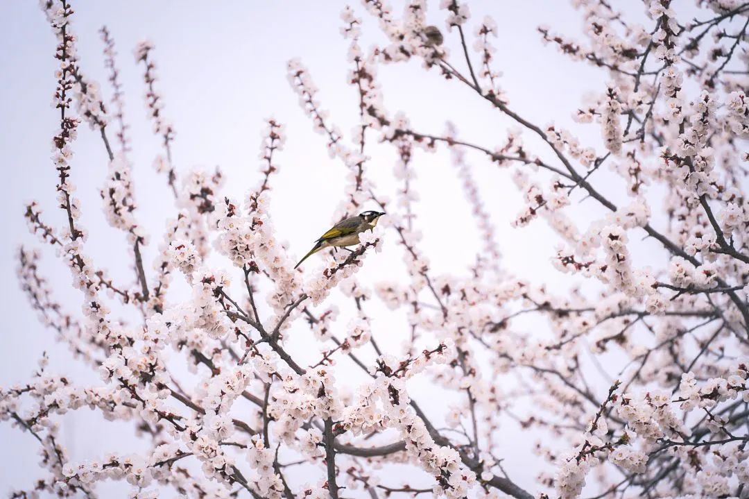 鸟儿在花枝间跳跃,分享着春天的喜悦