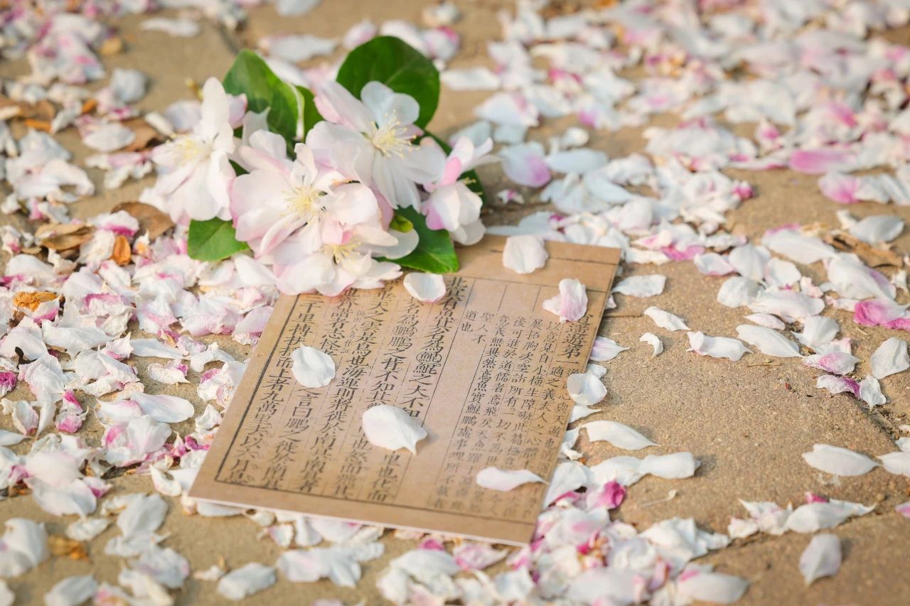书页的轻响与花瓣的轻摇相互呼应