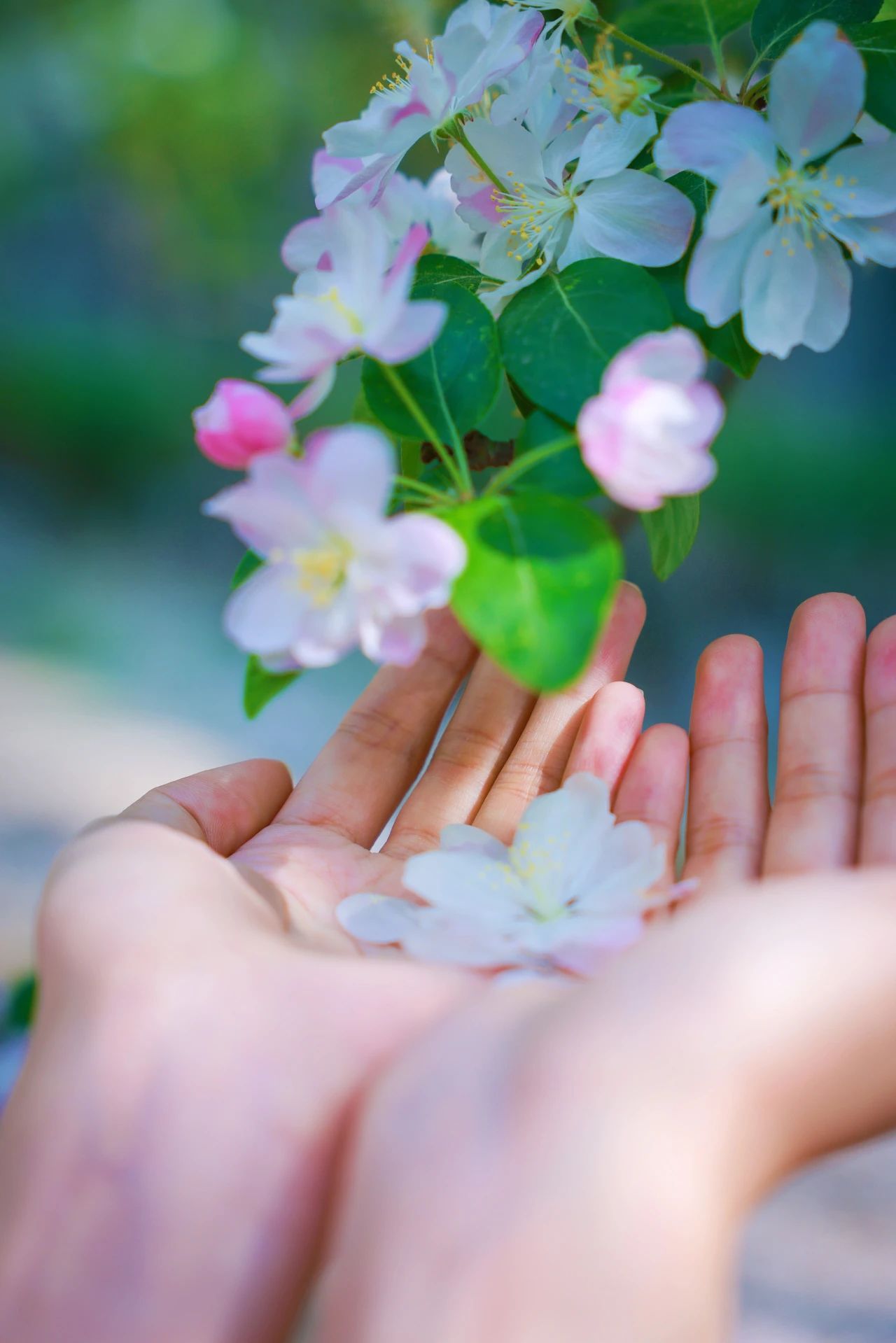 当微风轻拂,海棠树的花瓣随风起舞