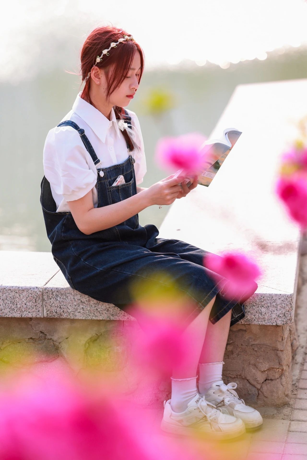 沉浸在花下的浪漫中