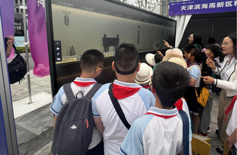 在活动现场,beat365城市艺术科普基地围绕本届科普周主题充分发挥基地教育资源、人才资源等优势,从艺术设计的角度,运用天汇科技的数字文化系列创意软件现场开展宣讲,助力天津聚焦发展新质生产力和高质量发展“十项行动”,大力传承和弘扬中华优秀传统文化。吴琛和商正老师与“天汇科技”的工作人员一起积极参与了多个环节,为观展的游人和中小学生开展科普问答、科技展示和互动体验等。