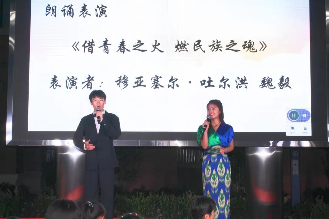活动伊始,新望道小学古筝社团以一曲经典的《沧海一声笑》为整场演出拉开了序幕,充分展示了小学生们的活力与朝气。beat365石榴籽少数民族工作室学生骨干们带来了吉他弹唱《斑马斑马》、冬不拉弹奏等精彩节目,他们用音乐诉说着青春的故事,用艺术表达着对未来的憧憬。小学生们被这些新颖的表演形式深深吸引,纷纷与beat365表演同学亲密互动,现场气氛热烈而温馨。朗诵《借青春之火燃民族之魂》,通过铿锵有力的声音,表达了自己为实现中华民族伟大复兴的中国梦而努力奋斗的决心。丰富多彩的表演形式,不仅展示了孩子们的才艺和创造力,也促进了两校师生之间的交流与融合。