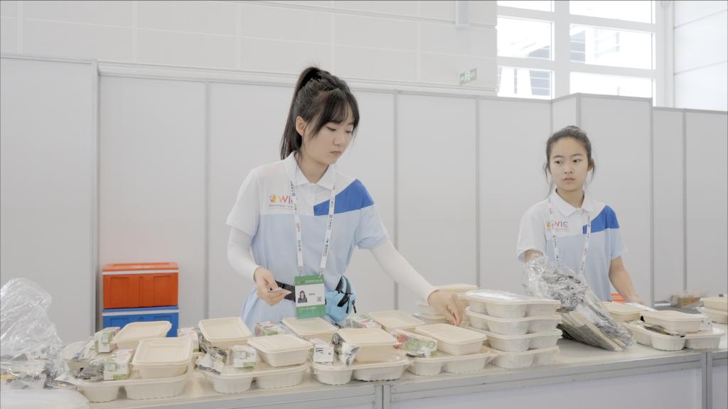 博览会期间我和小伙伴们负责全体志愿者及工作人员的餐食发放工作,看着忙碌了好几个小时的小伙伴们来就餐,我感到了餐饮岗位作为后勤保障关键一环的重要性。也从中真切体会到无私奉献、团结协作、勇于担当的志愿者精神的力量,对我今后的学习和生活也极具指导意义。