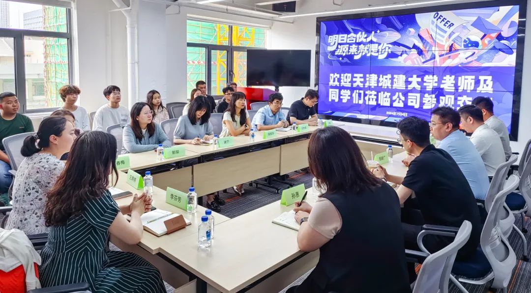 带着对数字技术的思考,实践队前往天津明源云公司,天津明源云市场部负责人以“深耕数字科技,助力产业升级”为主题进行分享,介绍了公司的发展历程、主营业务等情况,实践队师生与公司代表就数字化行业发展现状、毕业生就业等问题进行了深入交流,进一步认识到数字化转型对于房地产行业及京津冀协同发展的巨大推动作用。