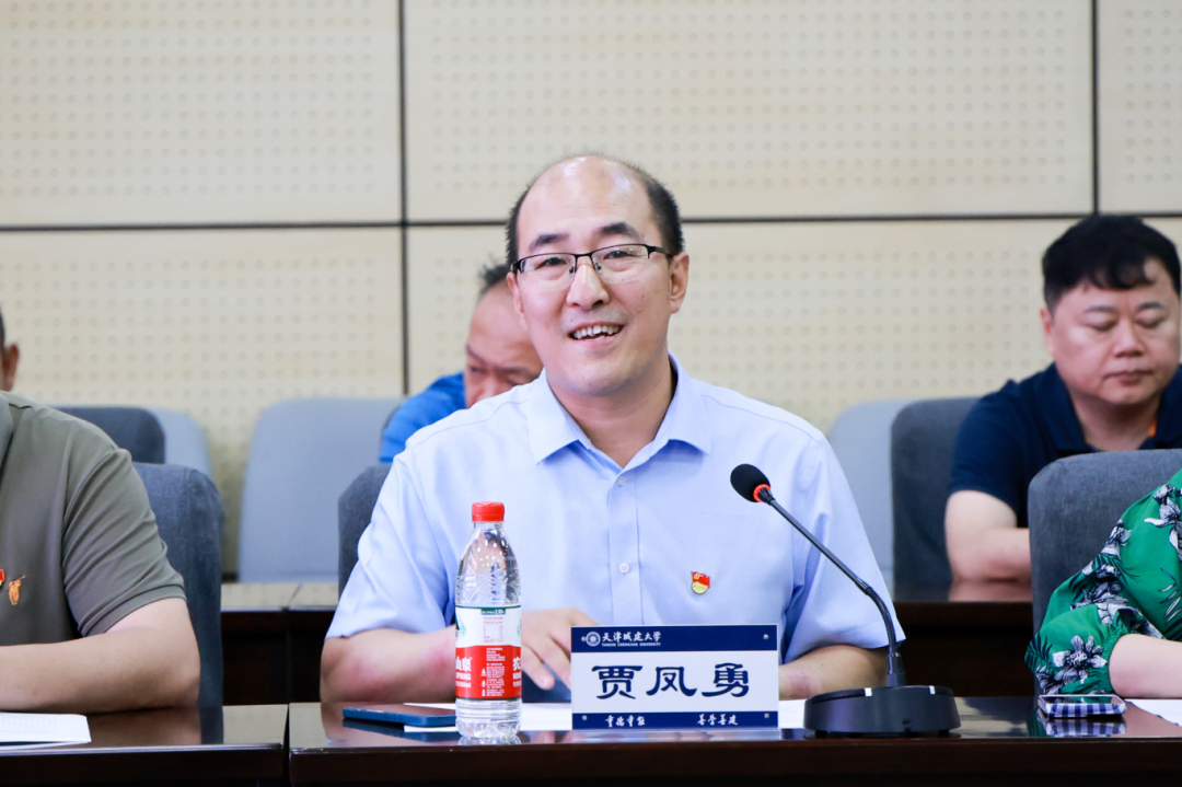 贾凤勇对天津水上公园党委的到来表示热烈欢迎,介绍了学校后勤保障工作基本情况,以及后勤直属党支部坚持党建引领与服务能力建设互融共促,以创造性贯彻落实彰显保障温度,着力提升后勤服务质量和管理水平的做法,希望通过本次共建活动,学习借鉴水上公园在环境绿化、生态维护等方面的先进经验,为生态校园建设注入新活力。