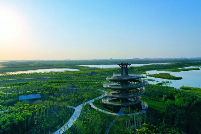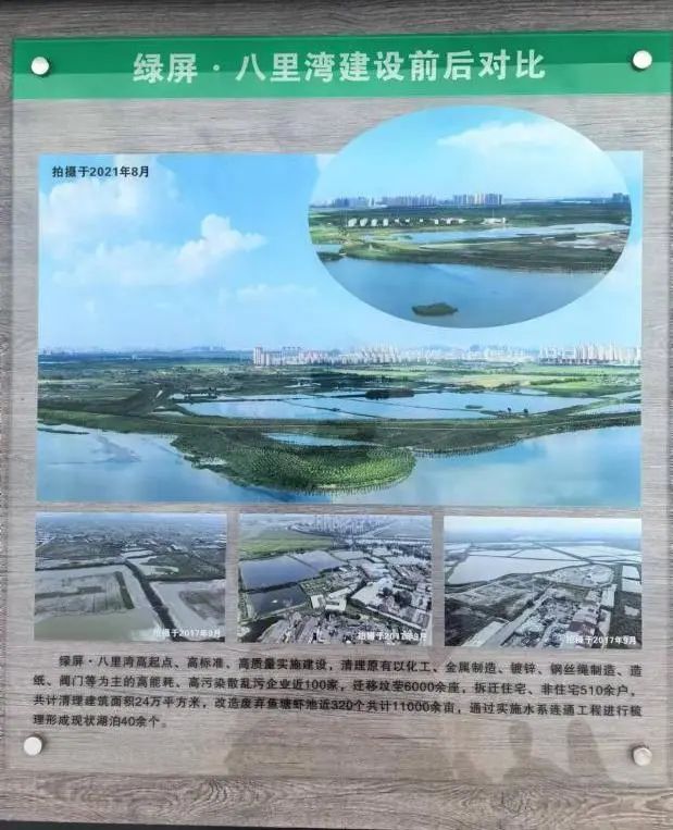 实践团成员首先来到八里湾绿屏工程所在地,了解到绿屏·八里湾结合原有地形地貌连通坑塘沟渠,梳理现有地形,科学合理选配树种,在拆除散乱污企业和违章建筑26万平方米,改造废弃鱼塘虾池330余个的基础上,“点绿成金”,森林碳汇稳步增加、产业结构持续优化、生活品质提质升级,形成林田水相依相映、人与自然和谐共生的美好景象。