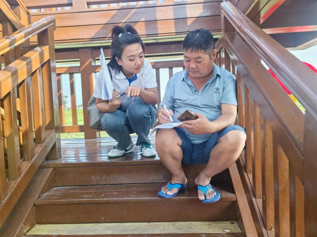 实践团成员与当地村民游客进行交流,发放《图说天津》宣传册、调研问卷,介绍地测学院科普基地情况,利用自身专业特色进行科普、生态文明建设宣讲,以专业服务乡村,助力津城生态农业。