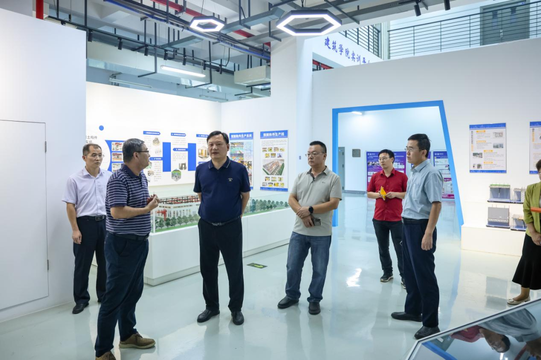 会后,孙玉周一行参观考察了学校工程实训中心,深入了解了装配式建筑实训平台和实践教学取得的成果。