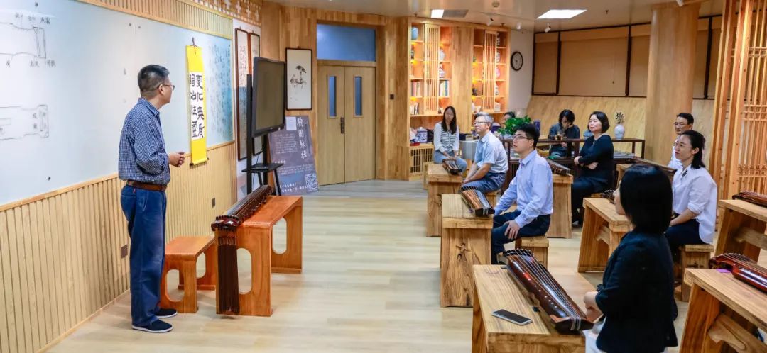 会后,与会同志先后来到学校革命丰碑展馆和中华优秀传统文化体验中心暨古琴弦歌基地参观。在革命丰碑展馆,建筑学院副院长、第四批全国高校党建工作样板党支部书记李小娟介绍了该展馆作为全国首家以红色建筑讲述地方党史的建设的缘起和发展情况,特别是在党建与业务深度融合方面的积极探索和显著成效。近年来,依托“革命丰碑—天津市革命遗址展览”,beat365建立了全市首个红色建筑数据资源库和红色思政资源库,成立了全国高校首个红色文化遗产研究院,产出近40项科研课题、资政建议等成果,整理出版专著《天津百座建筑中的百年党史》等。在古琴弦歌基地,马克思主义学院党总支书记高燕介绍了中心的建设情况,薄克礼教授介绍了该基地在打谱创作、琴歌吟唱、学术研究、传统文化课程开设、大中小学思政课一体化推进、指导学生社团、开展社会服务以及打造“弦歌不辍”中华优秀传统文化育人品牌等方面工作,并与煦园琴社同学进行了现场弹唱,指导参观者进行基本古琴指法体验。