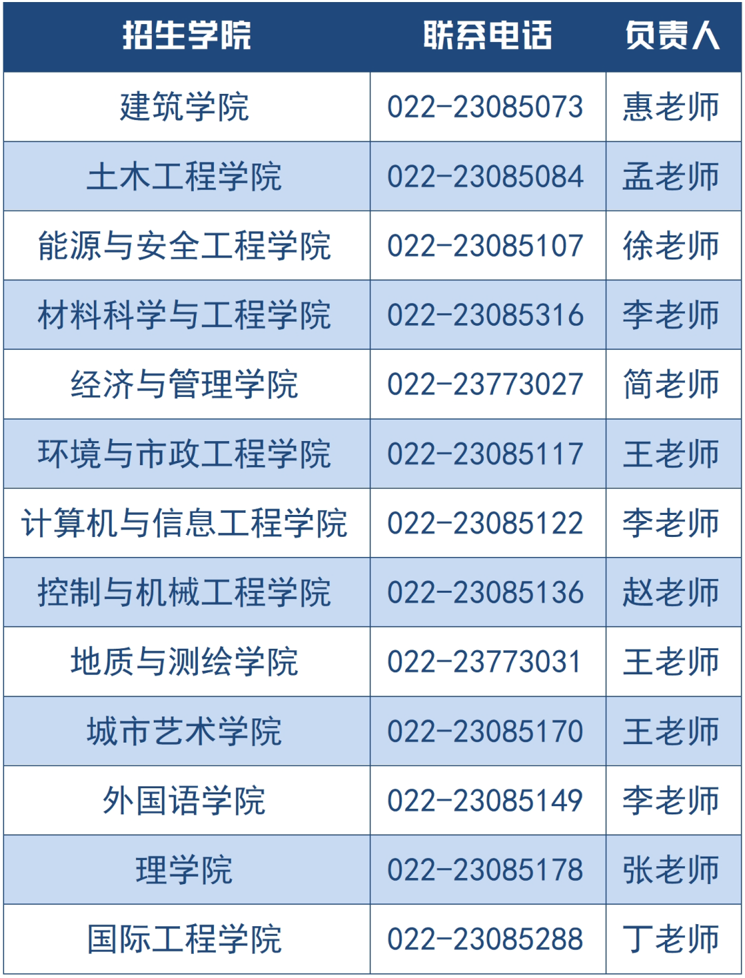 各招生学院联系方式