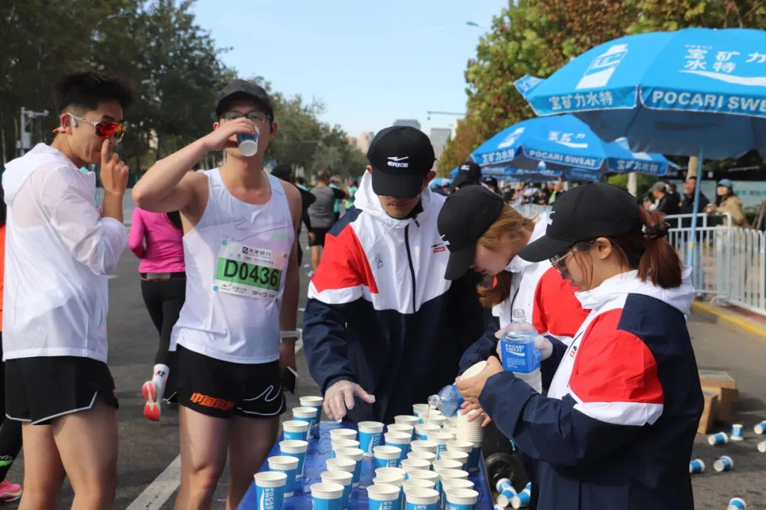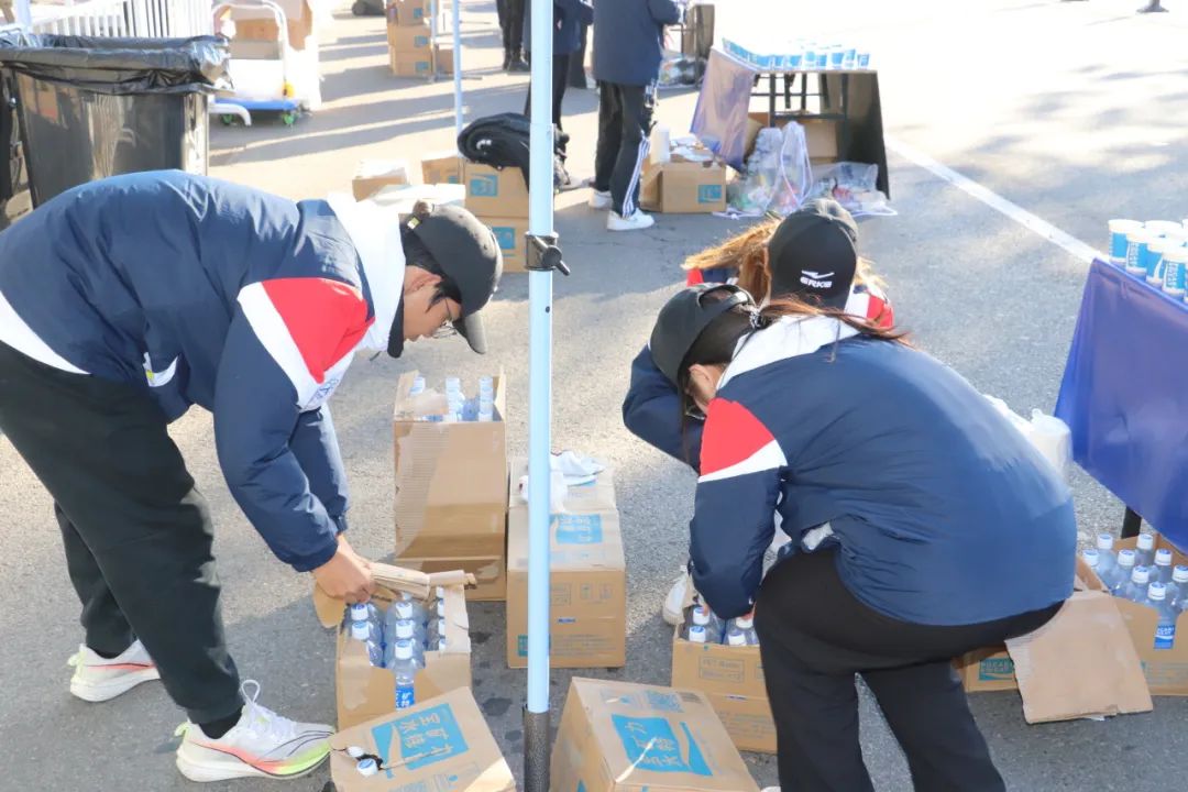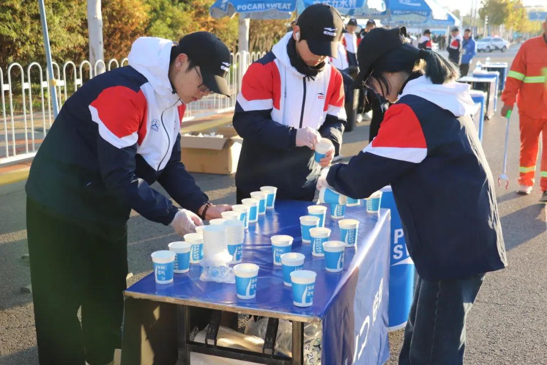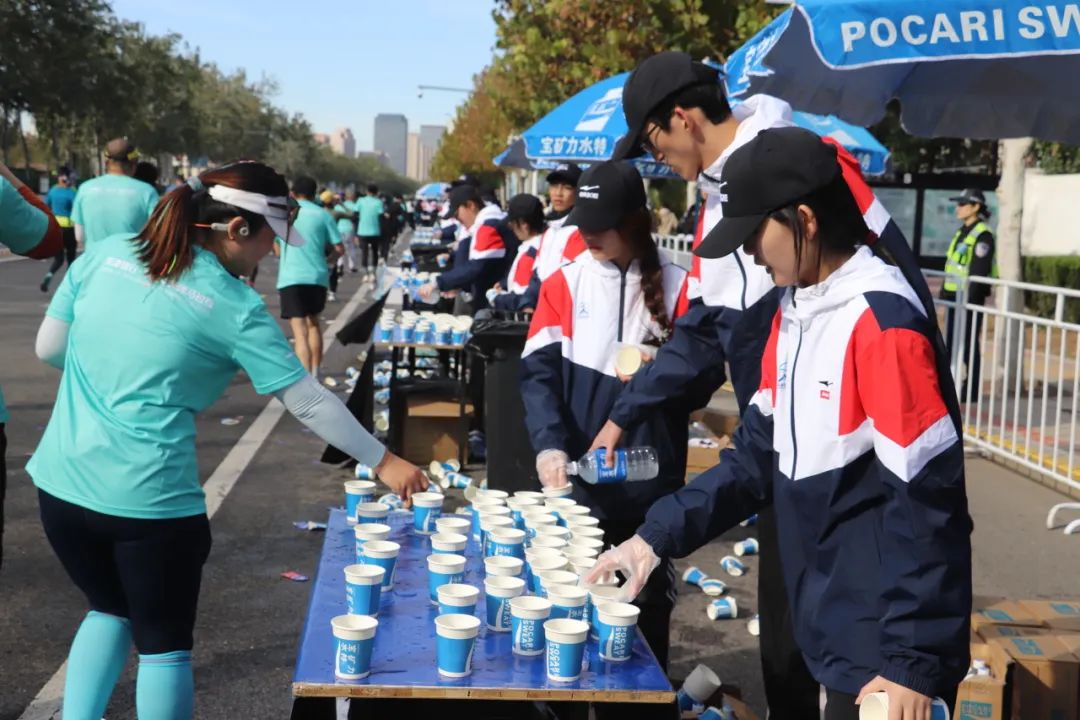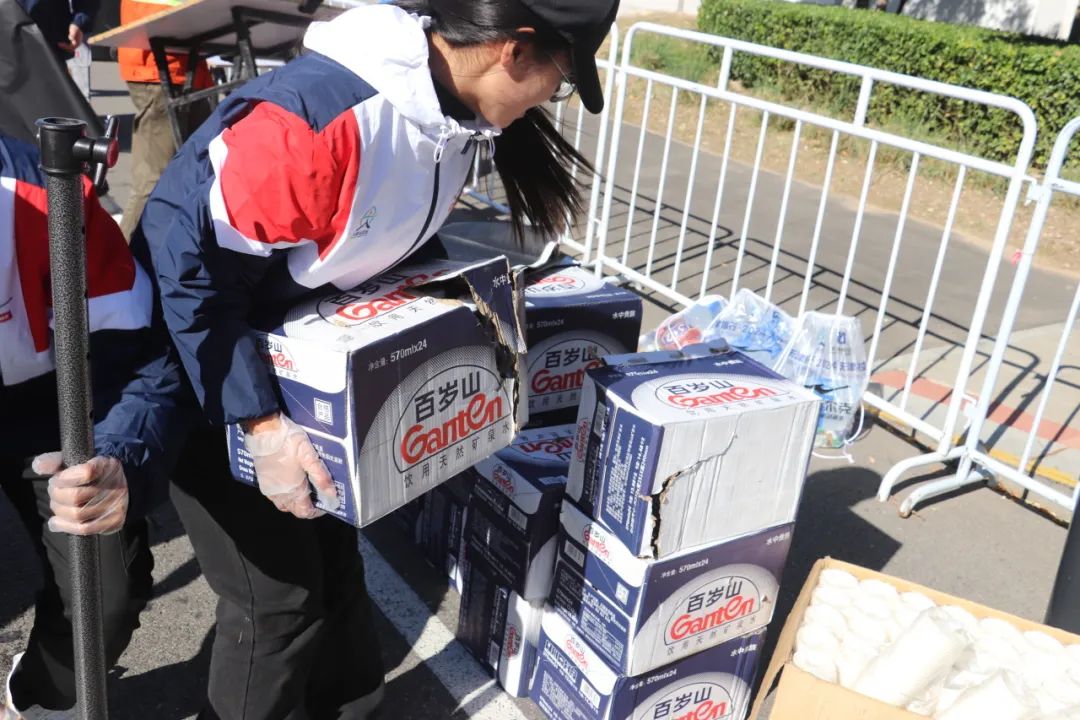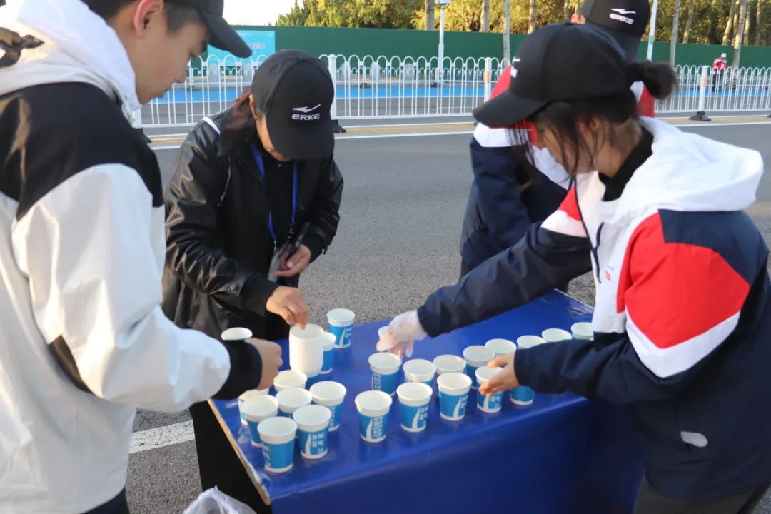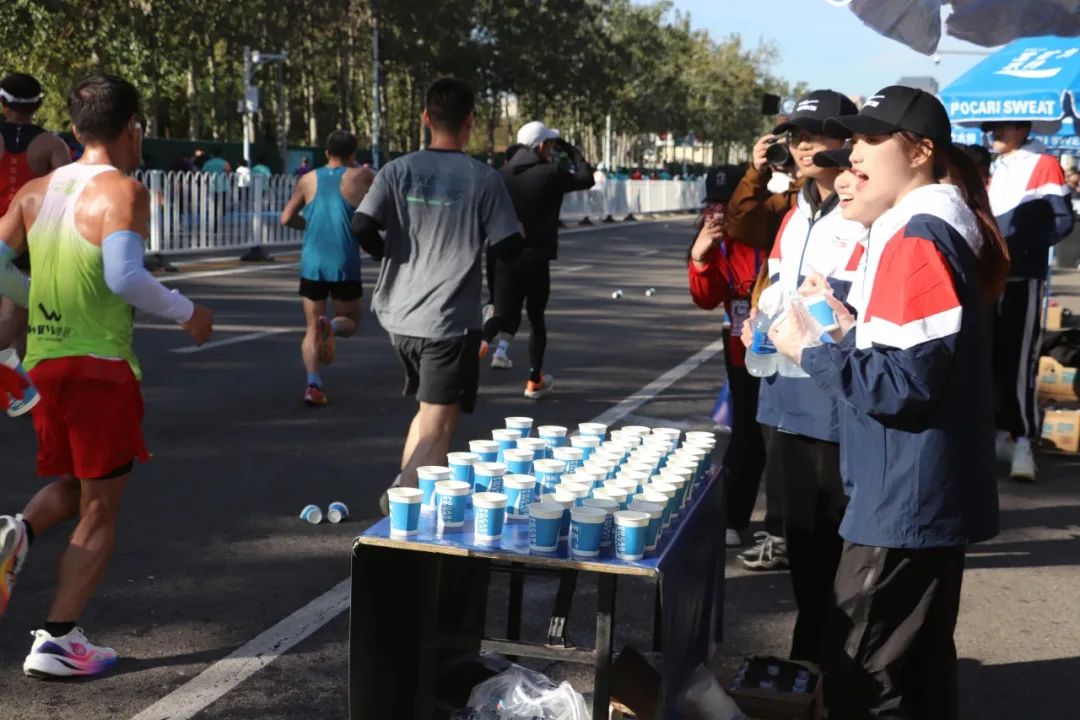每当参赛运动员取用桌上的一杯水或饮料后,现场的志愿者们便会立即行动,默契地进行补杯与倒水作业。小组成员之间分工明确,协同合作,有的负责快速补充空杯,有的则细心为水杯添清水或饮料,确保参赛者能够随时享受到便捷、周到的服务。这一系列流畅而高效的操作,不仅体现了志愿者们高度的专业素养,更彰显了团队之间紧密配合、相互支持的协作精神,共同为参赛者提供了全方位、多层次、高质量的志愿服务体验。