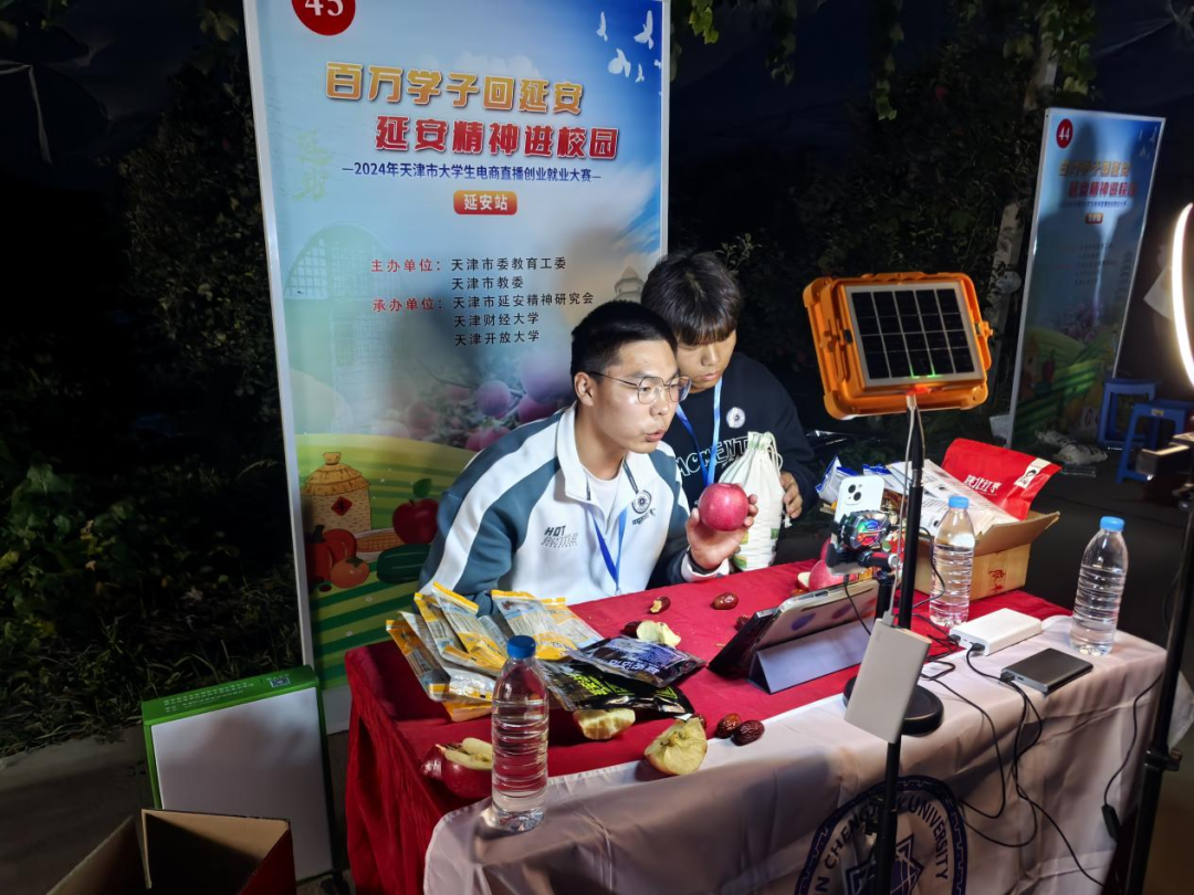 近日,市教育两委组织开展“百万学子回延安 延安精神进校园”系列活动—2024年天津市大学生电商直播创业就业大赛(延安站)。beat365推选的地质与测绘学院参赛队伍从全市百余支队伍中脱颖而出,与天津市44支高校团队共赴延安开展为期5天的直播大赛助力乡村振兴活动。