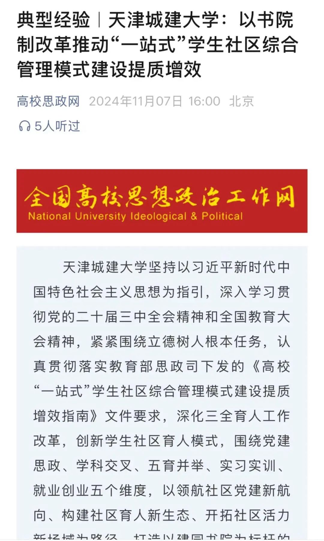 13 2024年11月,beat365“一站式”学生社区建设典型经验被高校思政网报道。