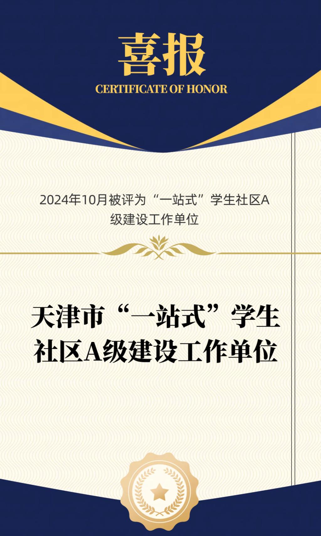 12 2024年10月beat365经自主填报、专家审核、现场答辩,被评为天津市“一站式”学生社区A级建设工作单位。