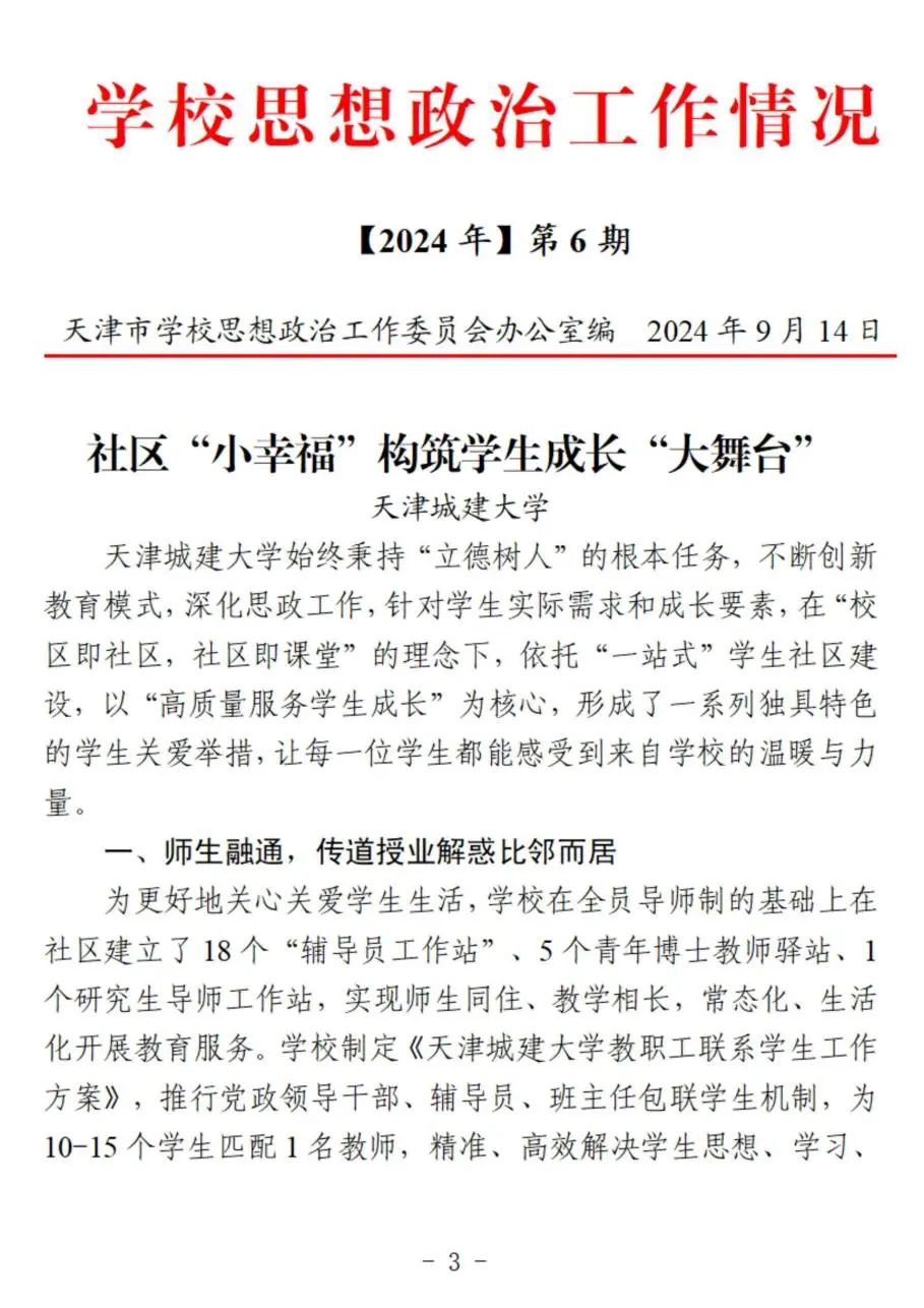 11 2024年9月,学校“一站式”学生社区关心关爱学生的系列举措作为典型经验被《学校思政工作情况》收录。