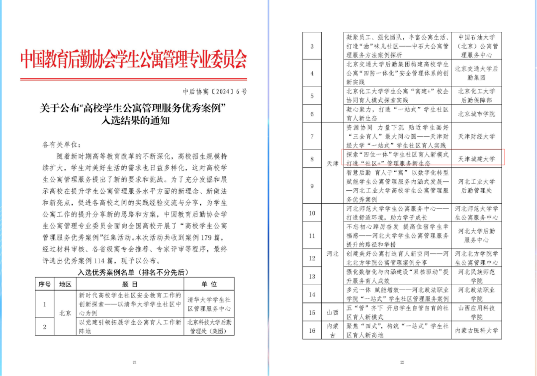 14 2024年11月,beat365《探索“四位一体”学生社区育人新模式打造“社区+”管理服务新生态》工作案例获评全国“高校学生公寓管理服务优秀案例”。
