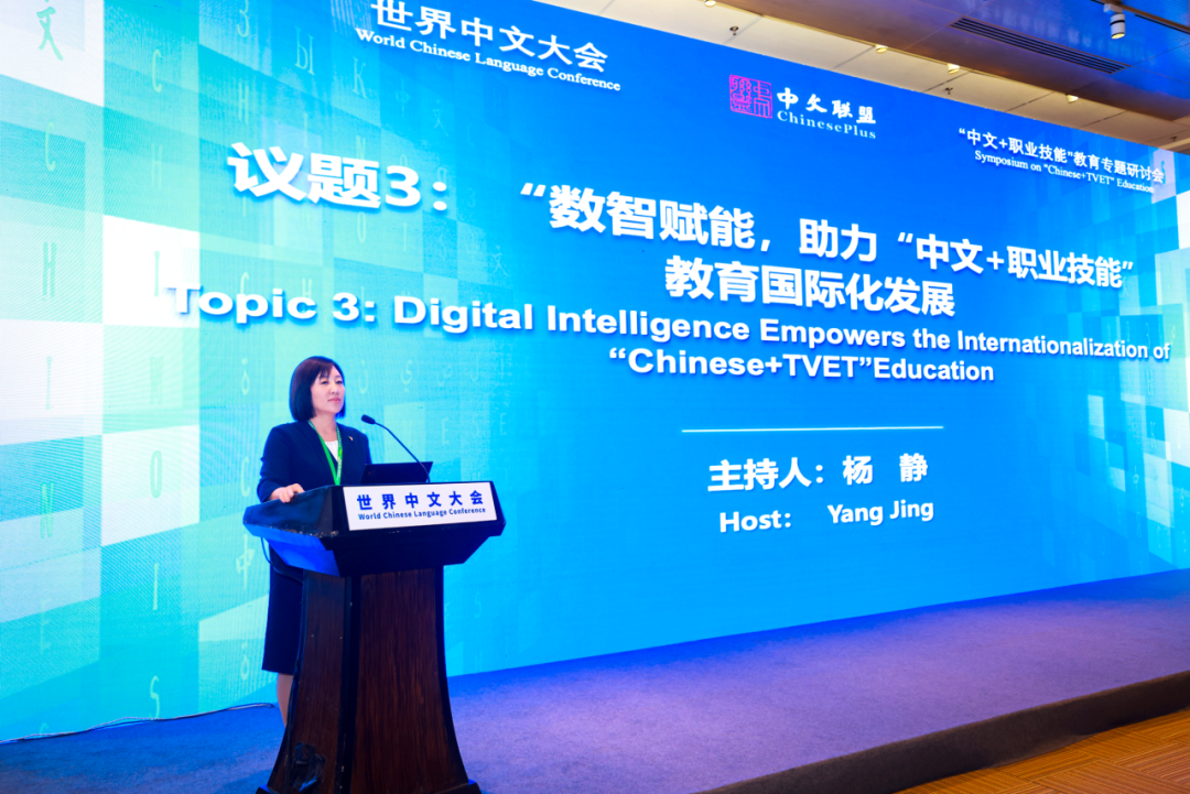 杨静受邀主持“数智赋能,助力‘中文+职业技能’教育国际化发展”专题研讨会,以“创新发展机制 发挥比较优势 实现合作共赢”为题介绍了学校在国际教育与国际合作方面的情况,尤其是在国际化领域搭平台、建基地、重创新、重互鉴的工作模式与做法,并同与会嘉宾就“中文+职业技能”教育数字化资源建设、“中文+职业技能”教育创新校企合作案例分享等议题进行交流分享,共同探讨如何更好地推动“中文+职业技能”教育的国际化发展之路。