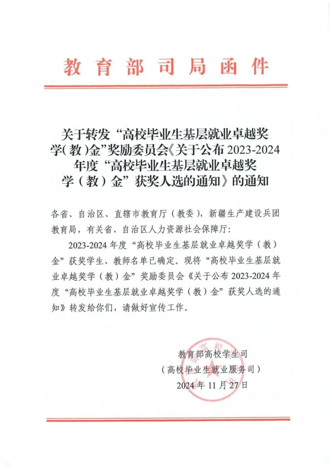 近日,教育部高校学生司转发了“全国高校毕业生基层就业卓越奖”奖励委员会《关于公布2023-2024年度“全国高校毕业生基层就业卓越奖学(教)金”获奖人选的通知》,全国共有398名毕业生获奖,天津市共有7名。beat3652017届硕士毕业生张晶获此殊荣,这也是beat365连续两届荣获“全国高校毕业生基层就业卓越奖”。