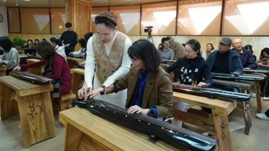 在学校中华优秀传统文化体验中心暨古琴弦歌基地,中华优秀传统文化体验中心暨古琴弦歌基地指导教师晋萌萌老师介绍了该中心在打造“弦歌不辍”中华优秀传统文化育人品牌的具体做法和近几年在传统文化育人方面所取得的成果。煦园琴社同学进行了现场弹唱,并指导与会教师进行了古琴基本指法体验。