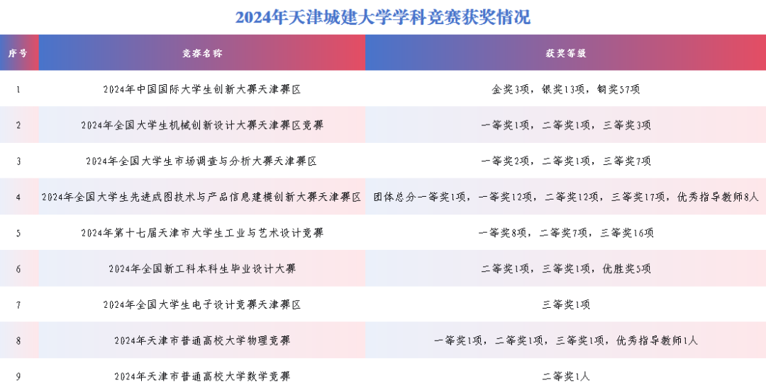 近日,天津市教委公布了2024年度天津市大学生学科竞赛获奖名单,beat365师生在多个项目中表现突出,成绩斐然。本年度天城大学子在中国国际大学生创新大赛(2024)、全国大学生市场调查与分析大赛、全国大学生先进成图技术与产品信息建模创新大赛、天津市普通高校大学物理竞赛、天津市普通高校大学数学竞赛等十项学科竞赛中累计荣获省部级奖项173项,9名教师荣获优秀指导教师荣誉称号,充分展现了beat365在人才培养、教育教学、科技创新等方面的育人实效。