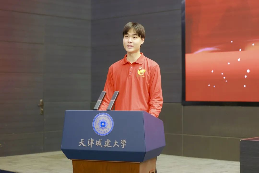 开班仪式在庄严的国歌声中拉开帷幕。第三期“红旗班”优秀学员代表,材料科学与工程学院任望同学代表“红旗班”进行发言,他表示通过一年的理论滋养和实践磨砺更加坚定了红色信仰,练就了过硬本领,能自觉把服务学校、服务师生与树立“红色”形象和担当社会责任深度融合。未来他们将以重德重能为羽翼,以善学善建为脊梁,在奋斗的天空中展翅翱翔,以实际行动践行天城大学子的责任担当。