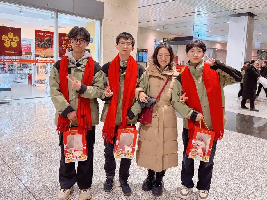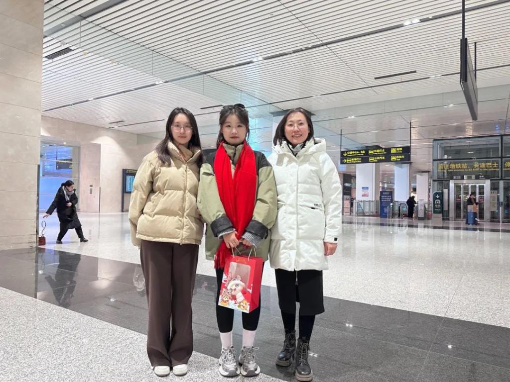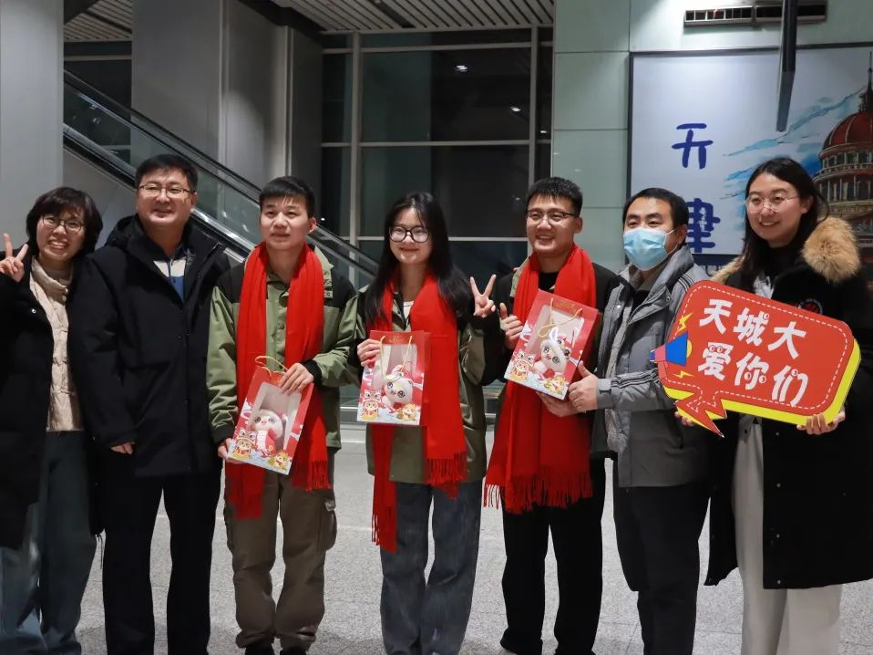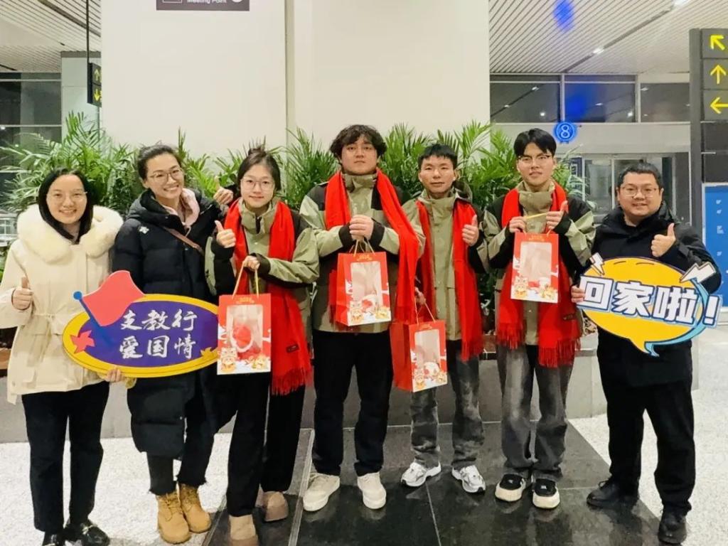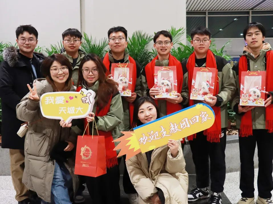 “你们辛苦啦!”“欢迎回家!”接机现场,相关部门和各学院负责人、辅导员老师代表为支教团师生送去了暖心新年福娃,王罡向带队教师献花,代表学校党委向全体奔赴新疆实习支教的师生们表示诚挚的感谢和敬意,并与支教团师生亲切交流。她表示,天城大一直秉承从理论中来,到实践中去的育人理念,32名师生跨越万里,从天津启航,奔赴新疆于田县,开启一场践行使命担当之旅,在支教的实践中他们坚定了信念,锻炼了才能,发挥了优势,圆满地完成了任务,完成了自身的成长和蜕变,努力为促进各民族交往交流交融贡献天城大力量。她希望,全体支教团师生能够将这次支教之旅视为人生旅程中的崭新起点,牢记习近平总书记的殷殷嘱托,努力成长为有理想、敢担当、能吃苦、肯奋斗的新时代好青年。最后,她向全体在场师生表达了2025年新年美好祝愿。