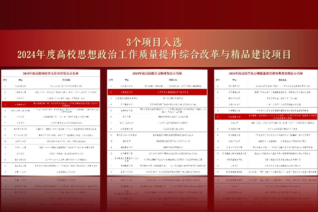 学校聚焦落实立德树人根本任务,突出思想引领,强化资源协同,擦亮红色文化育人品牌,以思政课为主阵地主渠道,以“课程协同育人”为攻坚点,以“五育并举”为着力点,以“队伍建设”为支撑点,构建“大思政”工作格局,多措并举推动思政工作提质增效,思政工作成绩显著。学校连续四年获评“天津市大学生思想政治教育工作优秀单位”,3个项目入选2024年度高校思想政治工作质量提升综合改革与精品建设项目,辅导员周涵入围全国高校辅导员素质能力大赛国赛并荣获全国优秀风采奖。