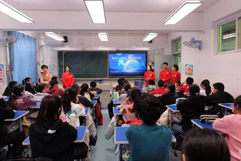 “如果AI模仿爸爸妈妈的声音让你转账,该怎么办?”宣讲团成员通过一个个视频揭露技术风险并教育小学生如何识别应对,提高防范意识。