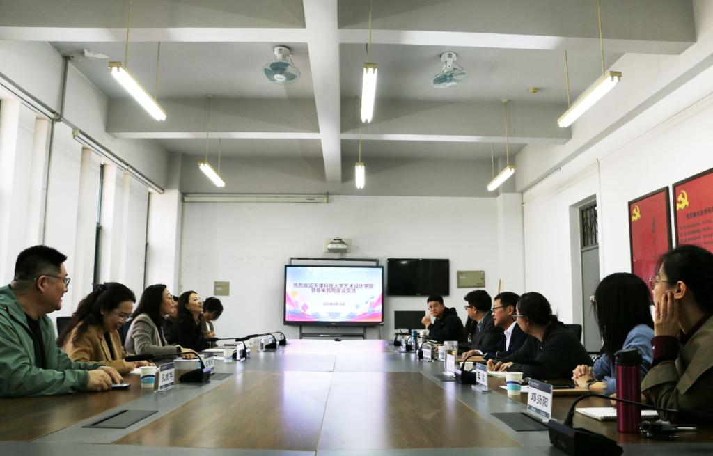 座谈会上,陈文科致欢迎辞,对天津科技大学艺术设计学院一行的到来表示欢迎,希望双方深入探讨,分享经验,共同推动艺术教育事业发展。朱丽丽对学校热情接待表示衷心感谢,期待双方能借此机会加深了解,促进双方在人才培养、学科建设、艺术创作等方面的合作。