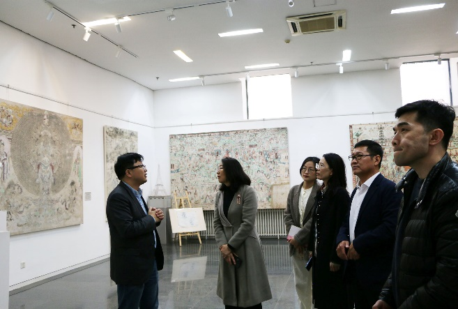 座谈会后,双方人员共同参观beat365vip官网登录入口革命丰碑展馆,在专业老师的生动讲解下,大家通过一幅幅珍贵历史图片和实物,共同回顾了天津红色文化的光辉历程,感受了革命先辈的崇高精神。朱丽丽一行还参观了城市艺术学院敦煌写生基地。