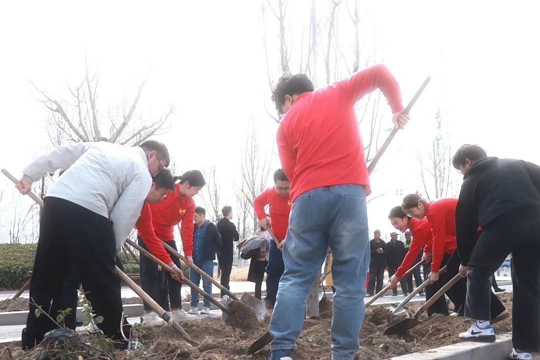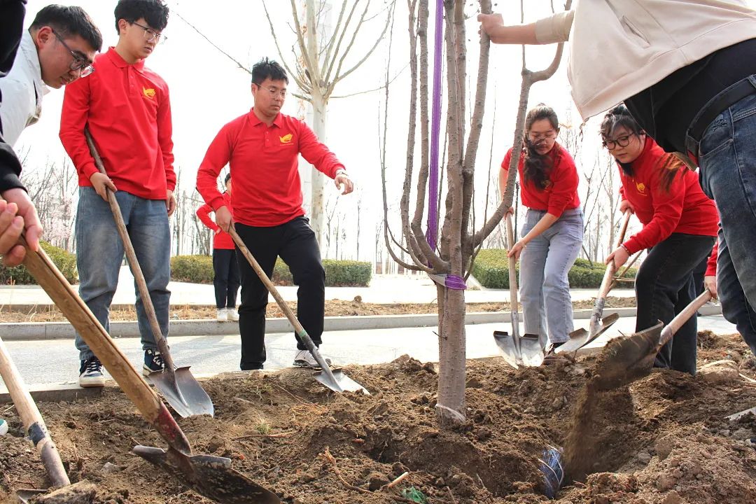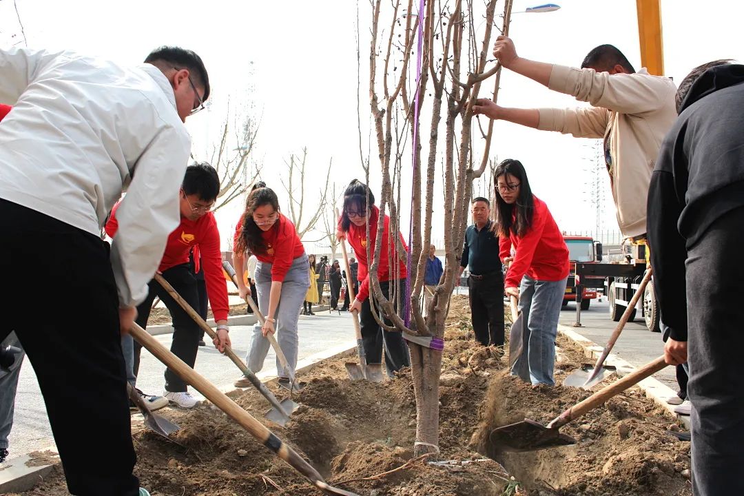 活动现场,师生们热情高涨,干劲十足。大家分工明确,配合默契,有的挥锹铲土,有的扶正树苗,每一个环节都认真细致,有条不紊。经过一番辛勤劳作,一棵棵海棠树苗在这片土地上“安家落户”,为大地增添了一抹新绿。