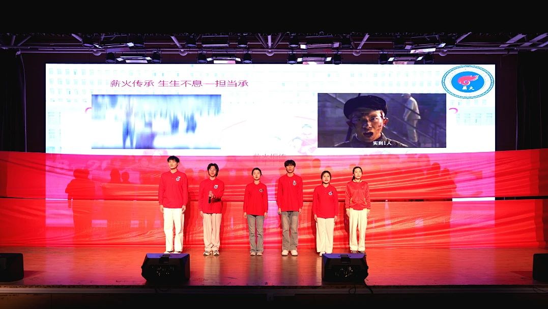 活动尾声,两期薪火班学员整齐列队,身姿挺拔。激昂的旋律《强国一代有我在》奏响,他们目光坚定,齐声高歌,仿佛在向世界宣告新时代青年的使命担当;他们手臂挥动,动作洒脱,展现出自信与豪迈。“广大青年要坚定不移听党话、跟党走,怀抱梦想又脚踏实地,敢想敢为又善作善成,立志做有理想、敢担当、能吃苦、肯奋斗的新时代好青年,让青春在全面建设社会主义现代化国家的火热实践中绽放绚丽之花。”大屏幕上,习近平总书记的寄语振奋人心,现场气氛被推向高潮,在场的每一个人都深深感受到传承红色血脉、担当强国使命的热忱与决心。