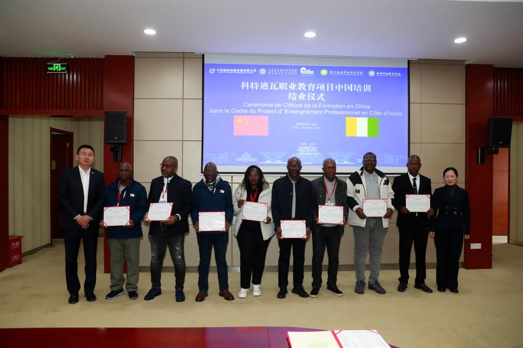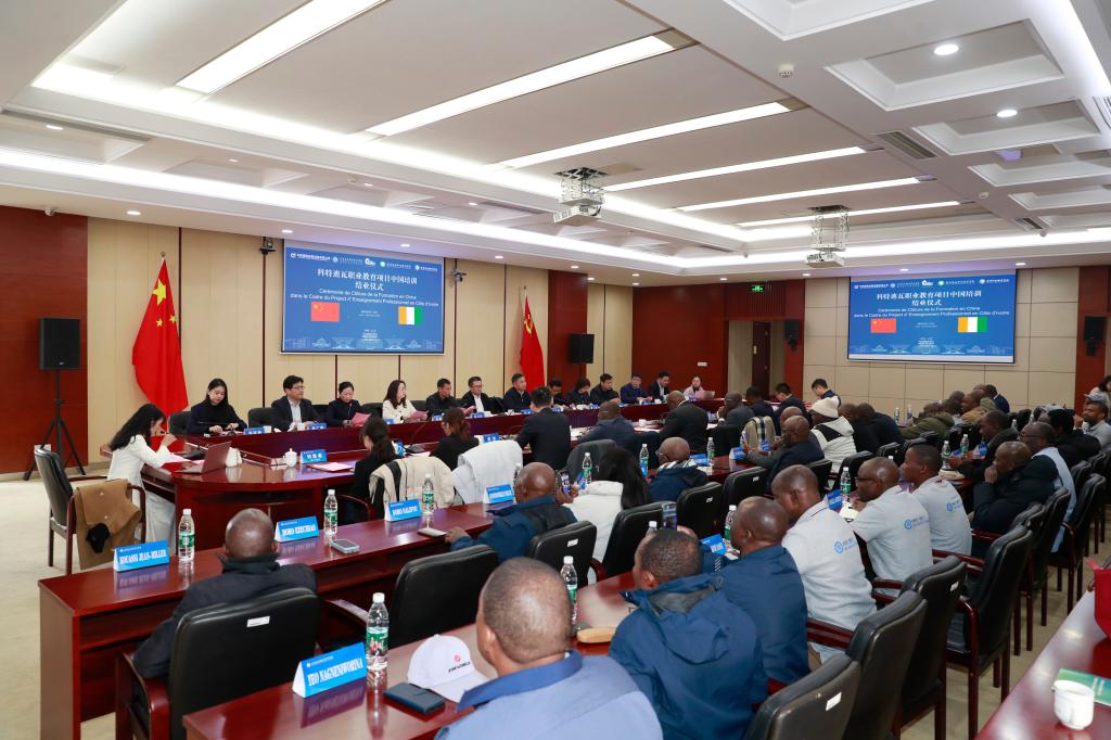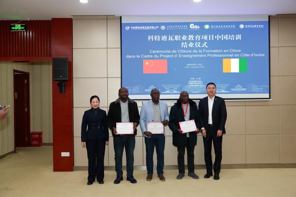 12月13日下午,学院举办了中航国际成套设备有限公司科特迪瓦职教项目农用机械、畜牧养殖、摩托车维修、农业种植培训结业典礼。出席本次结业典礼的外宾有科特迪瓦总理府技术顾问辛杜·科内、科特迪瓦技术教育、职业培训和学徒部办公室副主任库阿库·恩高涵·简·阿诺德、执行司司长恩资·艾迪·卡梅拉、执行司司长恩资·艾迪·卡梅拉、项目协调人佛菲·科菲以及43名科特迪瓦参训学员。国内嘉宾有中航国际成套设备有限公司四部总经理赵磊磊、高级项目经理薛楠、项目经理王晨、徐丽等。江苏省农业农村厅副厅长孙翔,科技教育处二级调研员夏小江,江苏省教育厅对外合作交流处二级调研员庾卫东,77779193永利官网党委副书记、院长潘永圣,台州科技职业学院副院长陈丽婷,苏州农业职业技术学院副院长孔婷婷以及项目承办校相关负责同志。结业典礼由77779193永利官网党委委员、副院长王瑾主持。