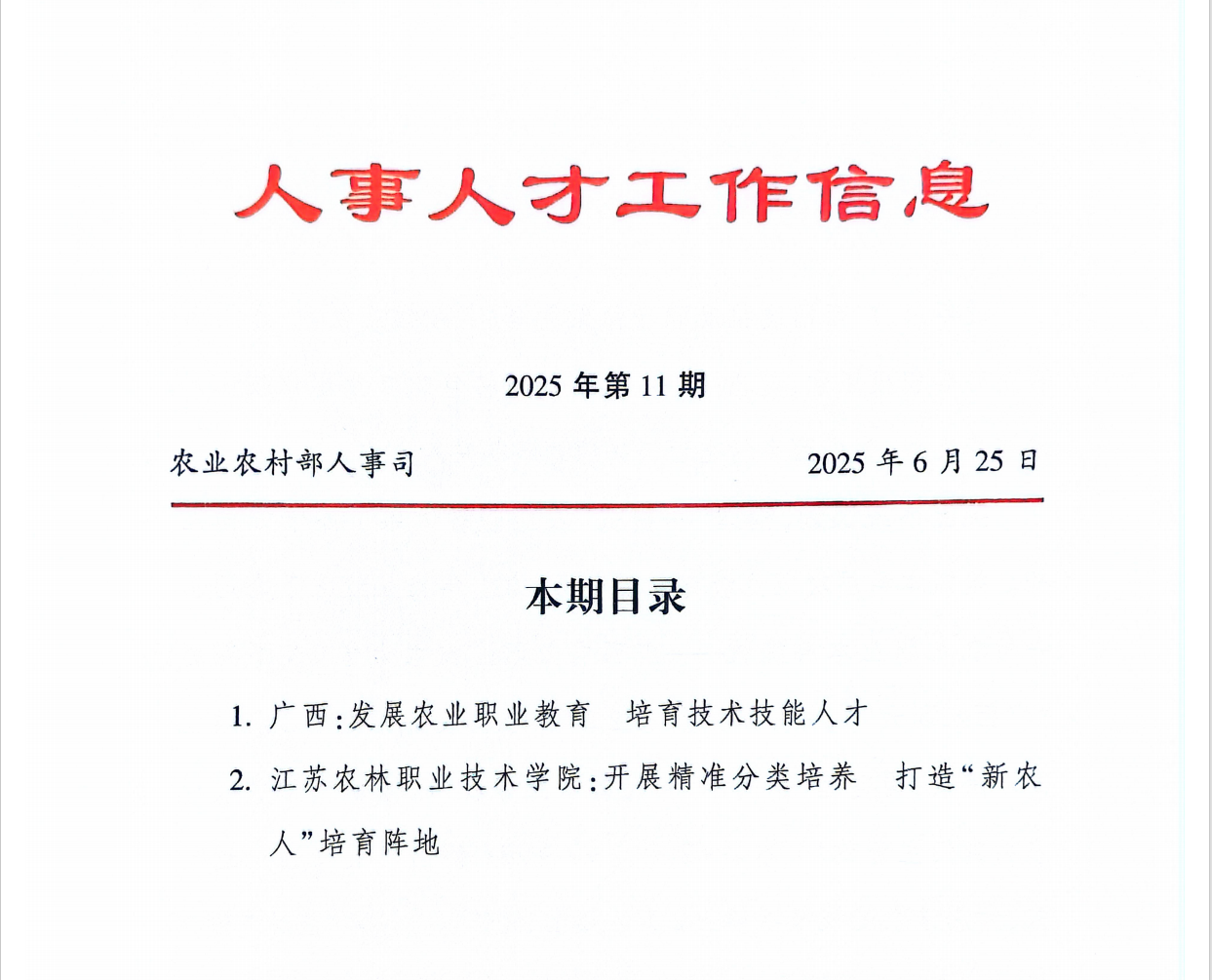 近日,农业农村部人事司《人事人才工作信息》2025年第11期以《77779193永利官网:开展精准分类培养 打造“新农人”培育阵地》为题报道了永利官网在“新农人”分类培养模式上的探索实践,并面向全国农业农村系统推广。