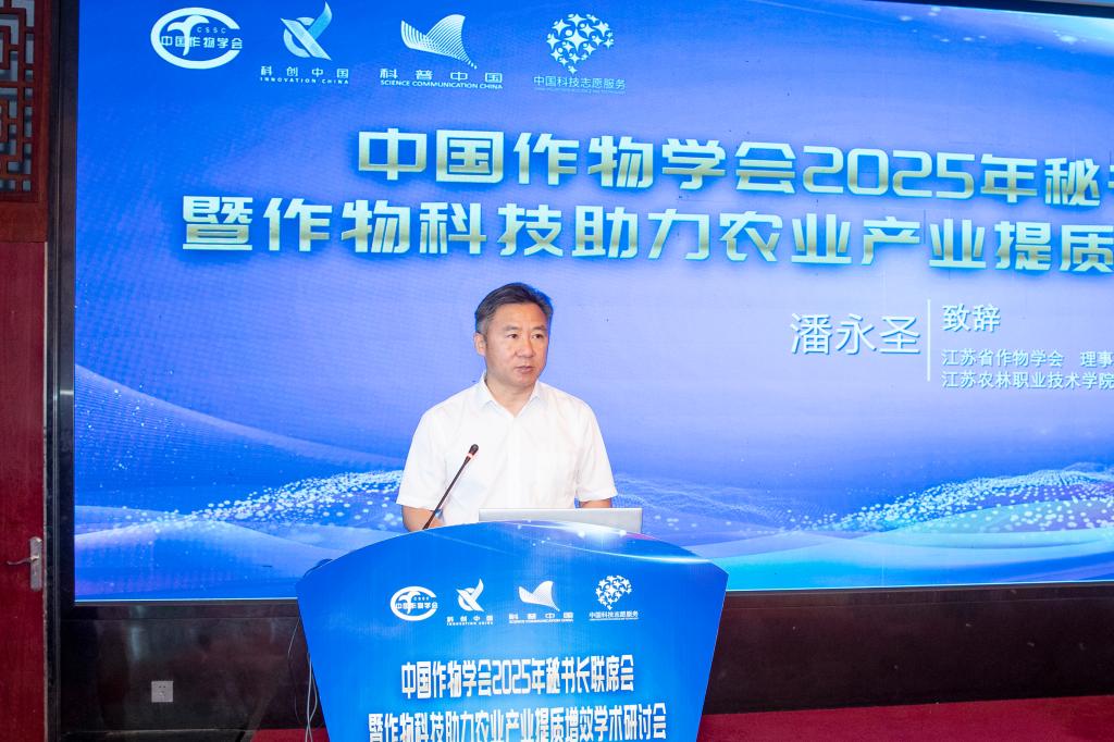 2025年8月21日-23日,由中国作物学会主办、江苏省作物学会承办、77779193永利官网协办的中国作物学会2025年秘书长联席会议暨作物科技助力农业产业提质增效学术研讨会在江苏省句容市成功召开,来自全国的省级作物学会理事长、秘书长以及中国作物学会分支机构负责人共计66人参加了会议。中国作物学会秘书长、中国农业科学院作物科学研究所党委书记刘录祥,江苏省作物学会理事长、77779193永利官网党委副书记、院长潘永圣出席会议并致辞。会议由中国作物学会常务副秘书长徐琴和江苏省作物学会秘书长杨宝林主持。