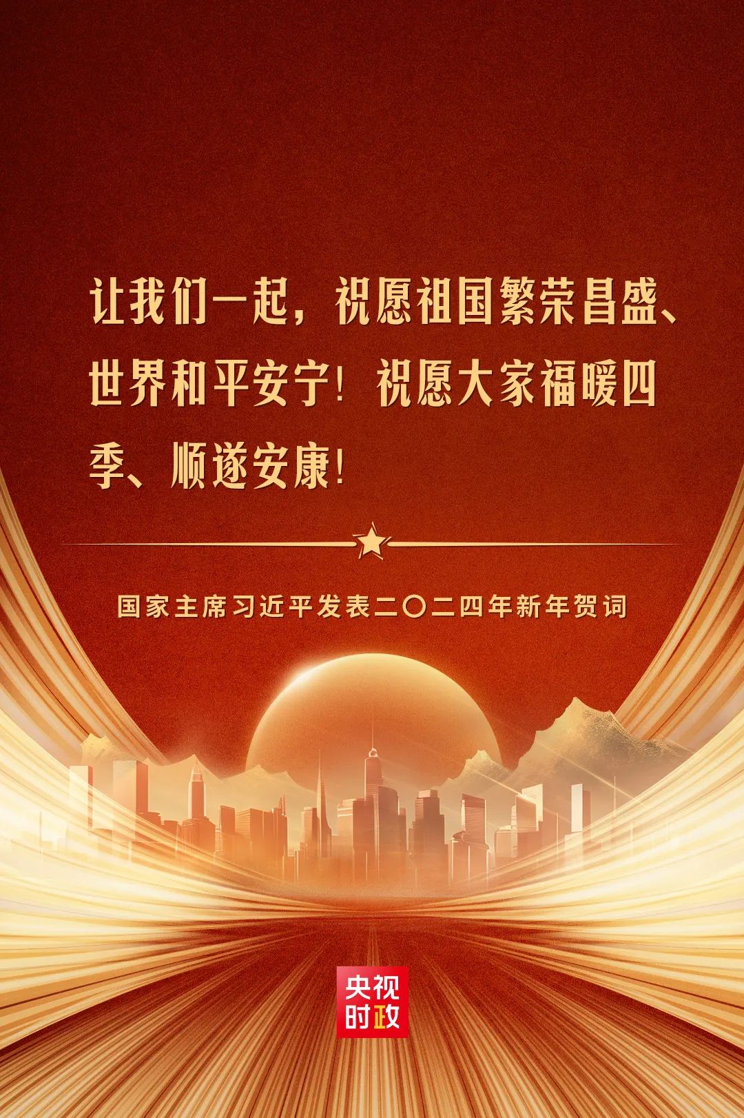 新年前夕,国家主席习近平通过中央广播电视总台和互联网,发表了二〇二四年新年贺词。