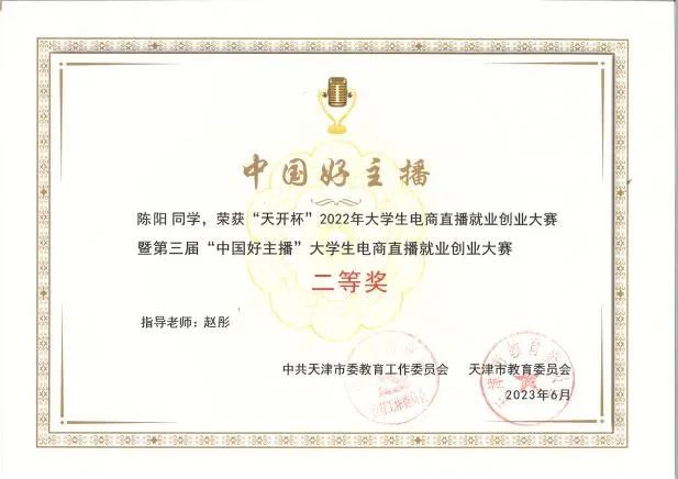 据悉,大学生电商直播就业创业大赛是由天津市教育两委主办,已连续举办三届。每届有40-50所高校参赛,累计报名过万人,活动得到快手、抖音和京东等互联网平台的大力支持,本次大赛吸引了近3000余名学生报名参加,共收到参赛作品1.2万余条,总播放量4000万次,大赛共产生一等奖10名、二等奖20名、三等奖30名,评选出13个优秀组织单位。