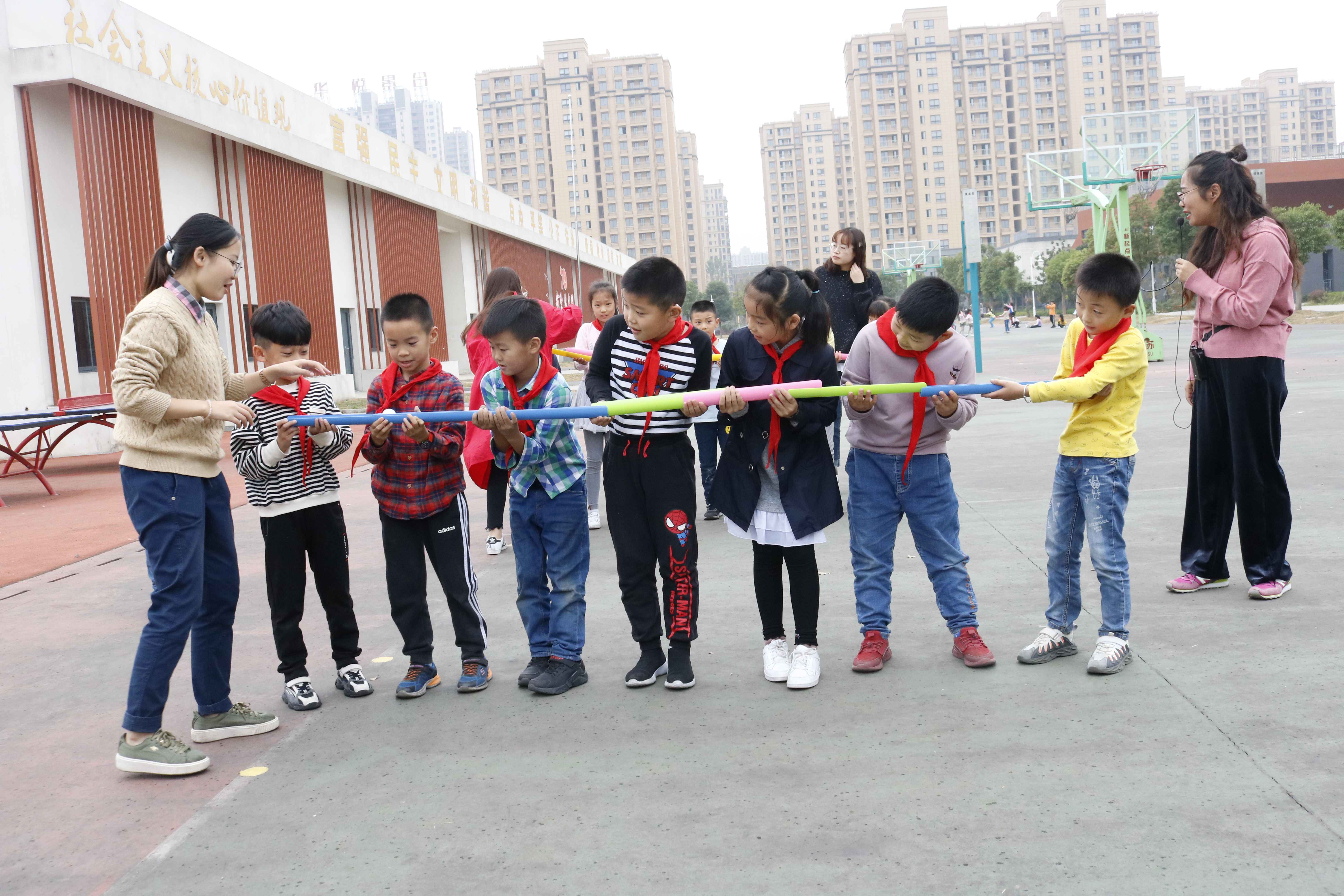 本次活动共有四个环节:桃花朵朵开、珠行万里、击进少年、搭桥过河。游戏内容简单易懂,亮点不断。大学生志愿者和孩子们玩得热火朝天,孩子们稚嫩的脸上洋溢着幸福的笑容,操场上回荡着欢声笑语。游戏过程中,志愿者们被孩子们纯粹的快乐所感染,逐渐放开了同学之间交往时拘谨的心。