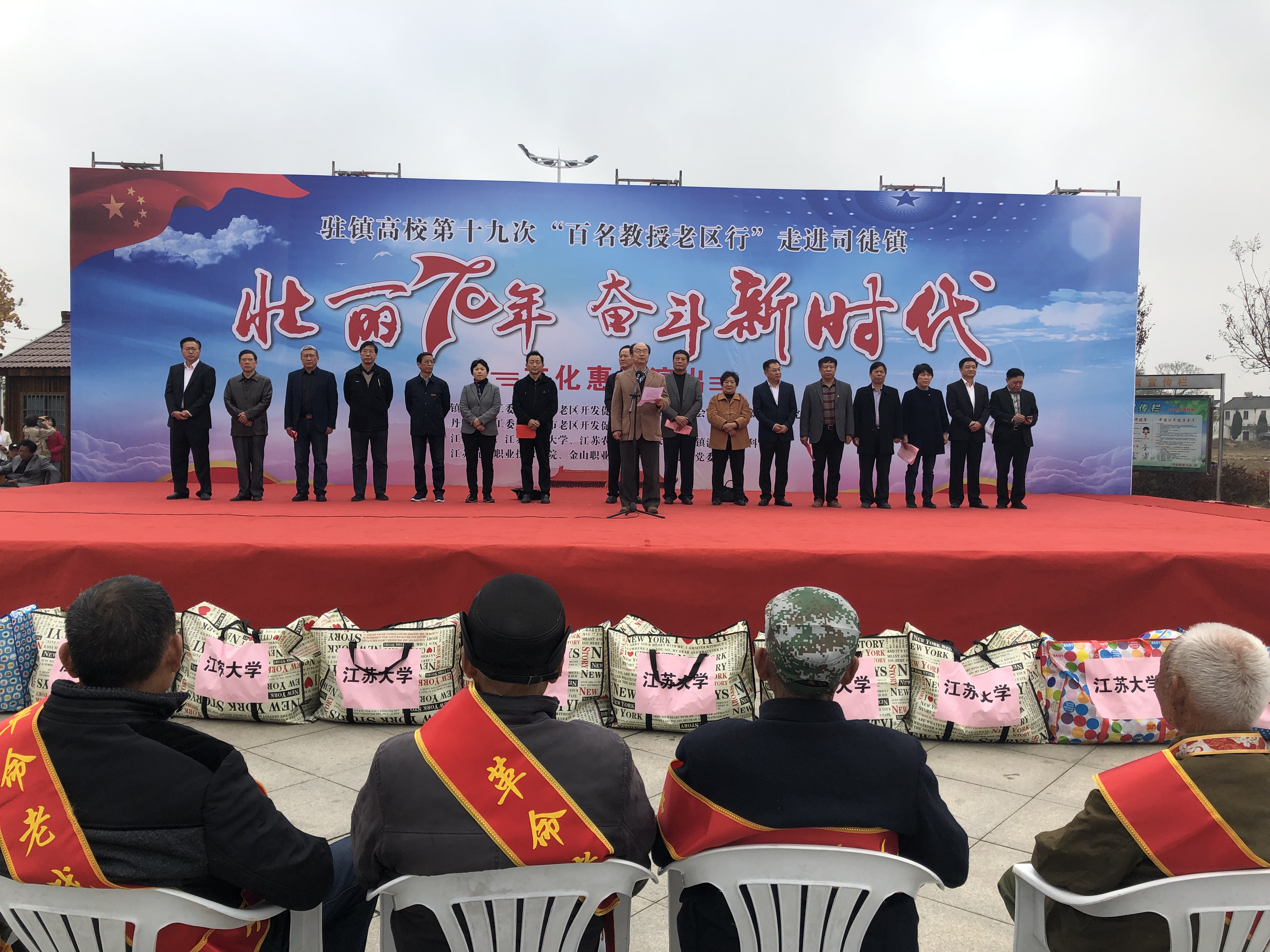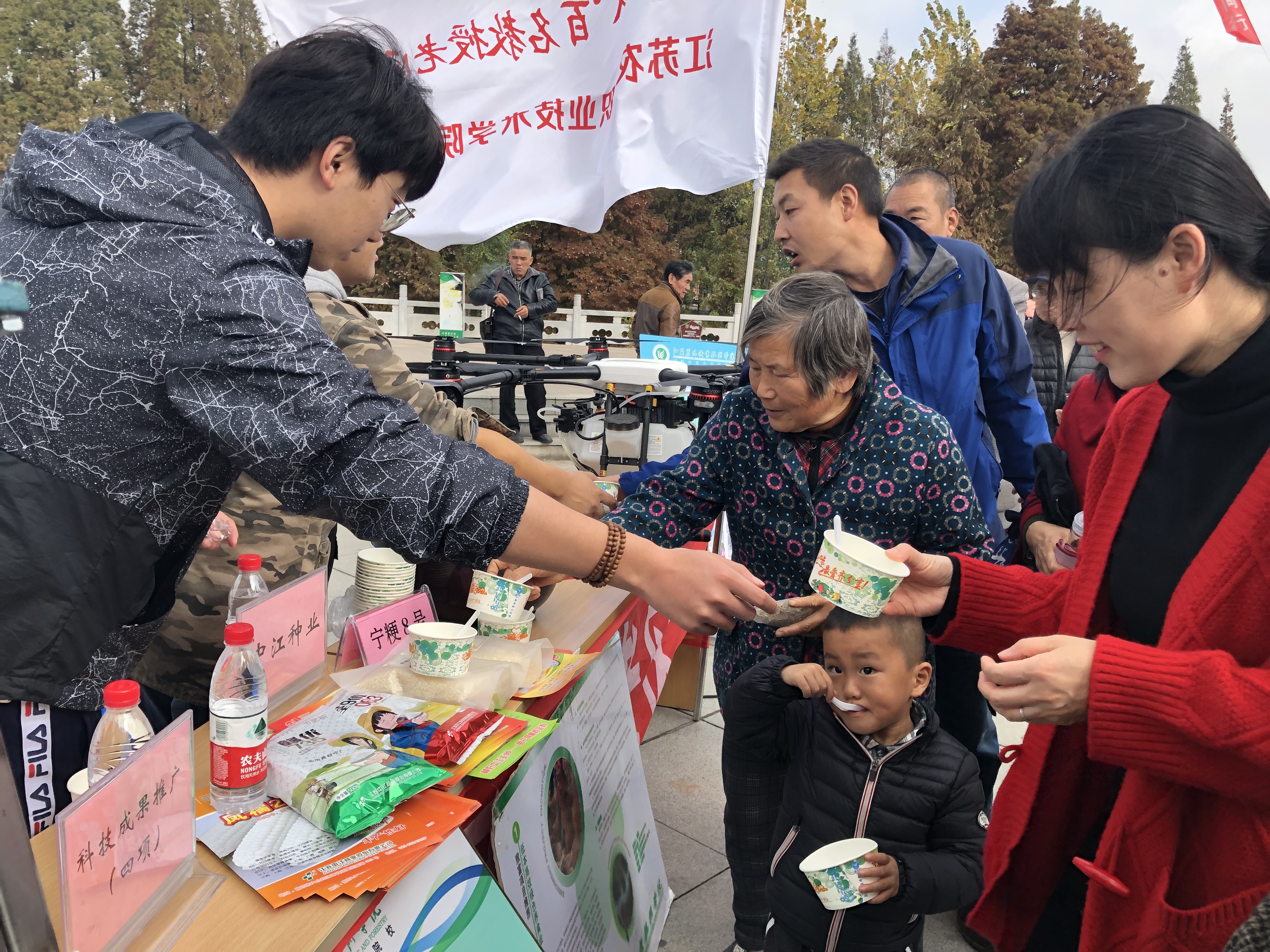 11月23日上午,由镇江市关工委、老区开发促进会、总工会主办的驻镇高校第十九次“百名教授老区行”活动,在丹阳市司徒镇举行隆重的启动仪式。永利官网关工委组成了由老同志、在职教师和大学生志愿者代表参加的服务团,分畜牧兽医、风景园林、农学园艺、食用菌、无人机、中江种业、科技成果推广7个展台为当地群众提供科技咨询服务,受到了老区干部群众的热烈欢迎和有关部门的一致好评。永利官网大学生艺术团还为当地父老乡亲献上了精彩演出,而身姿不凡的植保无人机展示则成为现场的一大亮点,中江种业推出的宁梗8号大米现煮品尝,吸引了众多观众。