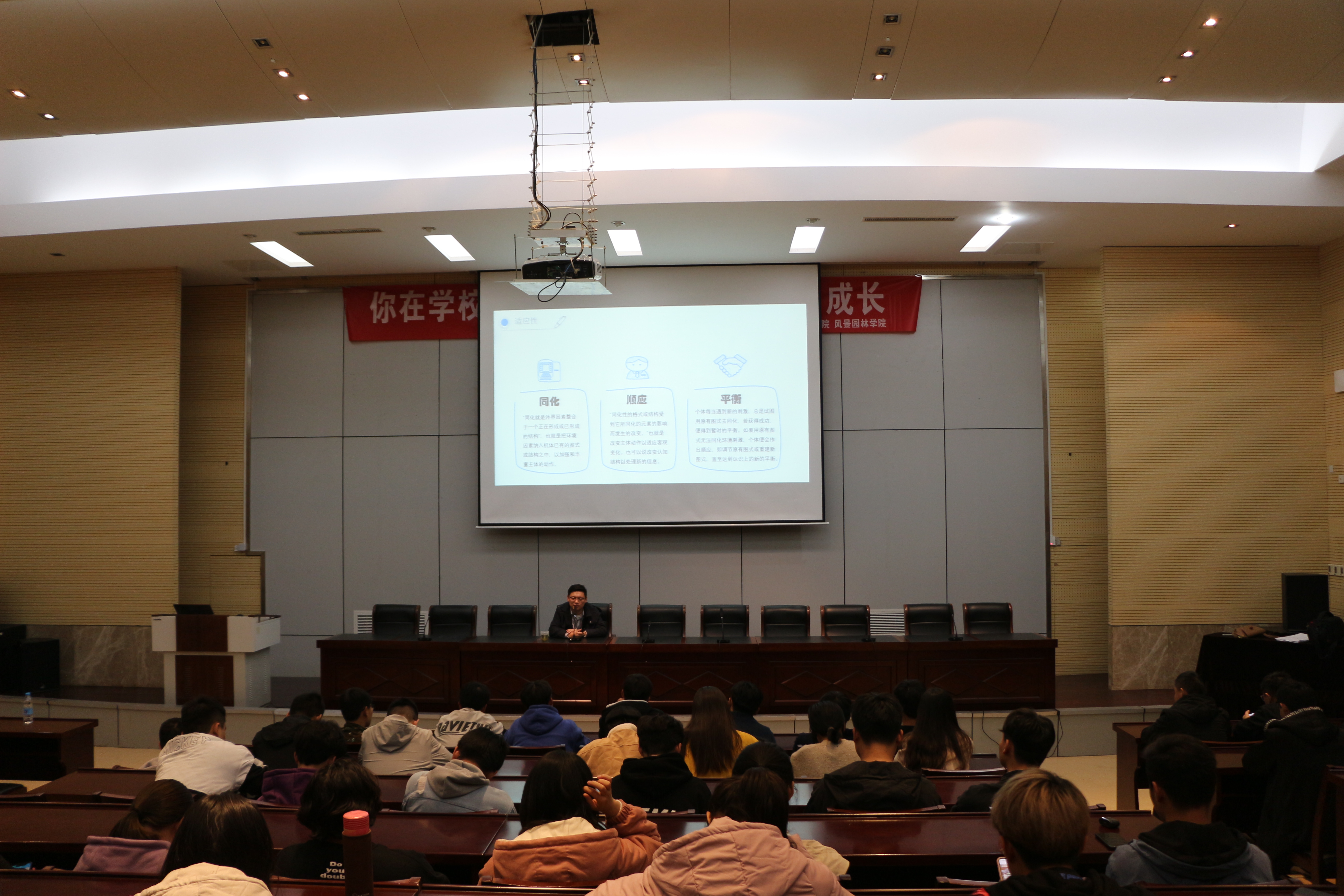 11月21日晚,由畜牧兽医学院与风景园林学院联合举办的“你在学校还好吗?——大学适应与成长”专题心理讲座在研发楼报告厅举行。本次讲座由江苏卫生健康职业学院卫生管理与基础学院团总支书记、南开大学应用心理学专业教育学硕士栾超老师主讲。