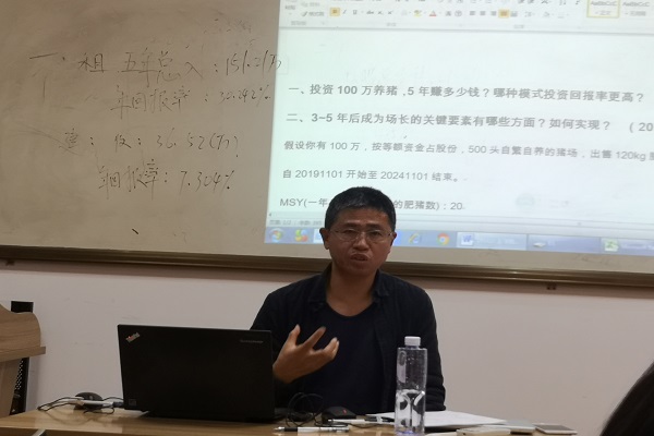 为探索新的人才培养模式,拓展人才培养的方式和方法,培养优秀的创新创业团队,加强学生创业意识和创新能力的培养,充分激发大学生的创业热情,11月26日下午,畜牧兽医学院邀请常加(上海)农业科技有限公司总经理王海峰博士举办了一场别开生面的创新创业沙龙活动《猪百万的创业计划》。