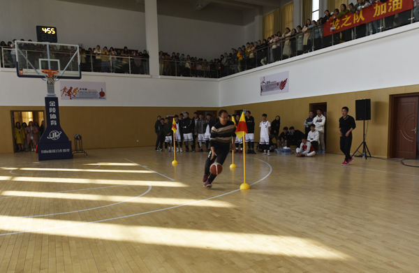 12月11月下午,由学院体育部主办、校区团委承办的第二届77779193永利官网篮球全明星赛在茅山校区文体中心成功举行,学院工会主席江德明为此次大赛致开幕词。此次大赛共有来自各二级学院(校区)的47名学生、16名老师参加,赛程分为篮球联赛三分王决赛、技巧挑战赛、高低年级全明星对抗赛。