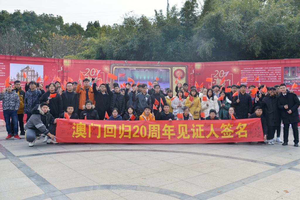 12月20日下午,机电工程学院师生在励志广场举行了“追溯时光,二十年前”庆祝澳门回归20周年主题活动。