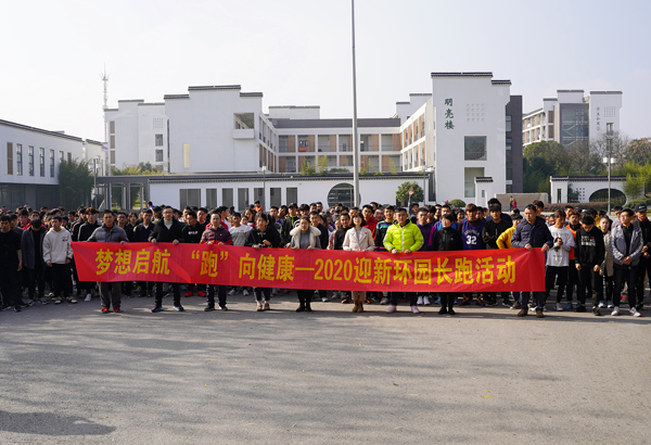 为倡导全民健身,以蓬勃饱满的精神面貌迎接新的一年,在2020年元旦到来之际,12月31日,由茅山校区团委主办的“梦想起航、‘跑’向健康”——2020迎新环园长跑活动拉开帷幕。本次活动吸引了校区400余名师生的参与。