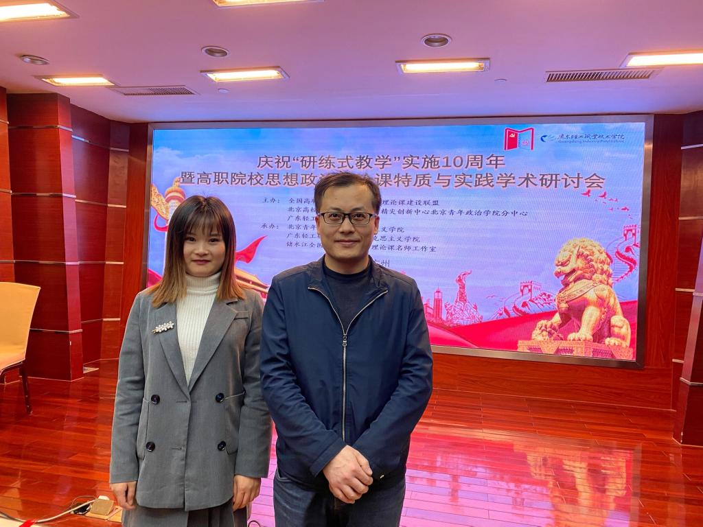 12月20日,永利官网唐智、徐丹丹两位教师赴广州参加由全国高职高专院校思想政治理论课建设联盟、北京高校思想政治理论课高精尖创新中心北京青年政治学院分中心联合主办的“高职院校思想政治理论课特质与实践”暨“研练式教学”十周年学术研讨会。