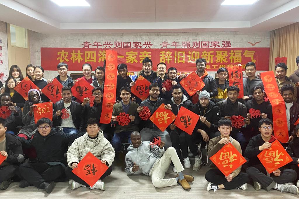 1月4日下午,机电工程学院举办“农林四海一家亲 辞旧迎新聚福气”主题活动,师生们与来自孟加拉国、缅甸、肯尼亚等国的二十多位留学生通过体验中国传统文化的方式,共度新年的美好时光。